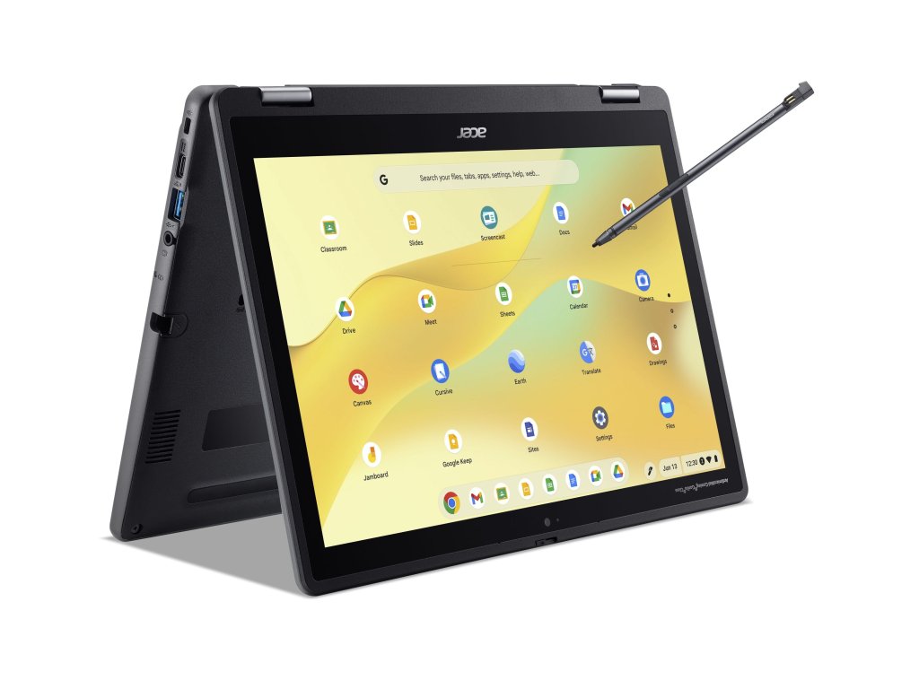 Acer Chromebook Spin 512 (R857TN-TCO-C4LZ) * H1 TPM čip * armádní standard MIL-STD 810H * certifikace TCO Operační systém: Chrome OS s Chrome Education Upgrade Procesor: Intel N-series N150 (4 jádra, 4 vlákna, 3,6 GHz, 6 MB cache) Paměť: 8GB LPDDR5x na desce Pevný disk: eMMC 128GB Optická mechanika: ne Čtečka paměťových karet: microSD Displej: dotykový 12,2" WUXGA (1920x1200) 16:10 lesklý IPS (Corning® Gorilla® Glass s antibakteriální vrstvou s podporou USI 2.0 Active pen) Grafická karta: Intel UHD Graphics 24EU Audio: stereo; 2x mikrofon Web kamera: HD USB + 8MP MIPI Auto Focus Čtečka otisku prstů: ne Polohovací zařízení: OceanGlass™ Touchpad Klávesnice: bez numerického bloku Pero: Acer Active Síť: ne Bezdrátová komunikace: WLAN + Bluetooth (Wifi 6E Intel AX211 2X2 CNVi + BT 5.3) Porty USB: * 2x USB 3.2 Gen1 * 2x USB typ C™: USB 3.2 Gen1 (až 5Gb/s/DisplayPort přes USB-C/USB nabíjení 5/9/15/20V; 3A/DC-in 20V; 45W) Další porty: * 1x HDMI 1.4 * 1x kombinovaný konektor pro sluchátka/mikrofon (3,5mm) * 1x bezpečnostní slot Kensington Baterie: 53Wh Li-ion, 3článková Napájení: 65W USB-C AC adaptér Barva: černá Rozměry: 294x215x19,5/20,7mm Hmotnost: 1,5kg Záruka: 2 rokyDodatočné parametre