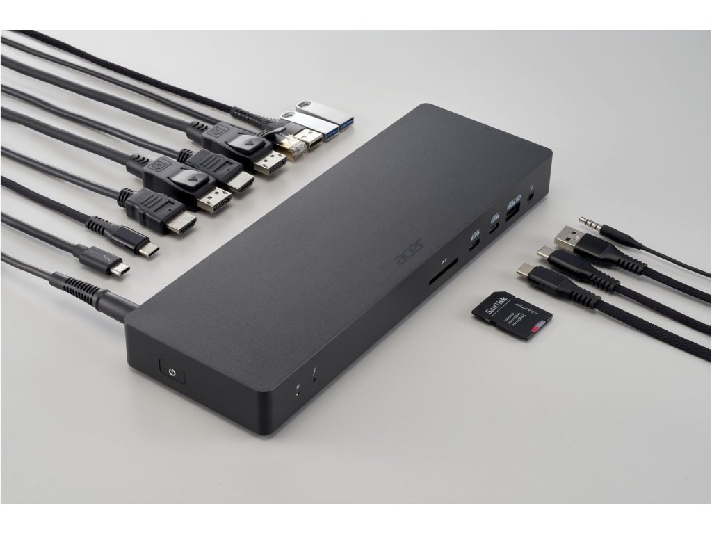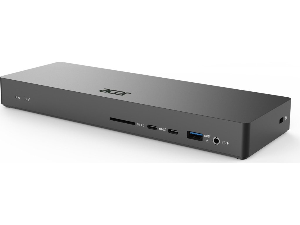 Dokovací stanice Acer Thunderbolt 4 T701 * plně kompatibilní se zařízeními Thunderbolt 4 poskytujícími připojení 40 Gb/s * nabíjení notebooku přes jeden port * kompatibilní s Apple M1/Intel Mac – podporuje počítače Mac Apple M1 a Thunderbolt 3 * Intel Windows Compatible – podporuje Thunderbolt 4/3 Windows Síť: Ethernet (10/100/1000Mbps) Napájení: 135W AC Přední porty: * 1x čtečka karet SD4.0 * 2x USB 3.1 Gen2 typ C * 1x USB 3.1 Gen2 typ A * 1x konektor pro sluchátka/mikrofon Zadní porty: * 3x USB 3.1 Gen2 typ A * 1x 10/100/1000Mbps LAN * 2x DP 1.4 * 2x HDMI 2.0 * 1x USB4/Thunderbolt 4 až 90W PowerDelivery * 1x USB4/Thunderbolt 4 s DaisyChain * 1x napájecí konektor DC * 1x bezpečnostní slot Kensington Barva: černá Rozměry: 245x84x27mm Hmotnost: 450g Záruka: 1 rokDodatočné parametre