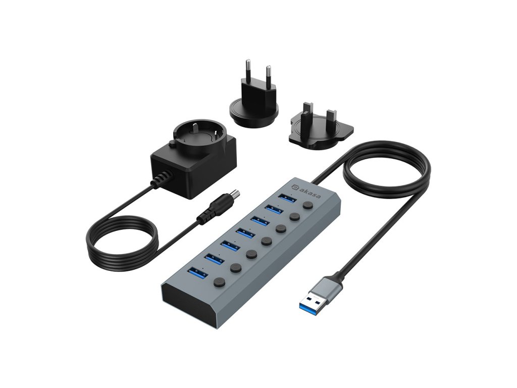 AKASA Connect 7 IPS Připojte až sedm zařízení a užívejte si bleskové přenosové rychlosti 5 Gb/s s tímto stylovým rozbočovačem USB. Samostatný vypínač a indikátory LED ukazují přístup k napájení a datům. Materiál: hliník Rozměry: 135 x 42 x 18mm Délka kabelu: 0,6 m Porty: *USB 5Gbps Type-A (samec) *7x USB 5Gbps Type-A (samice)Dodatočné parametre
