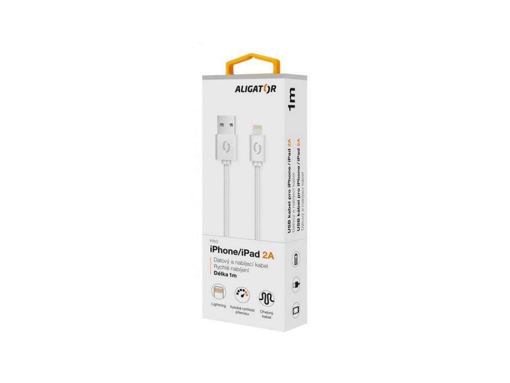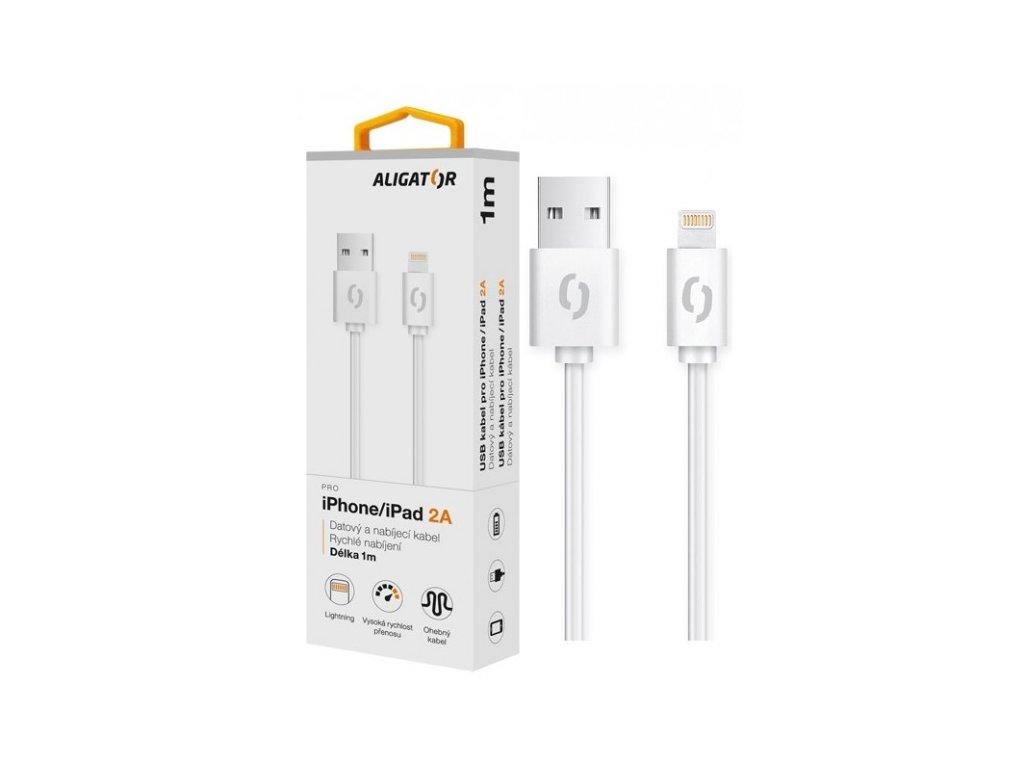 Datový a nabíjecí pro iPhone/iPad s lightning konektorem ALIGATOR: *Vysoce kvalitní konektory *Vysoká rychlost přenosu dat *Možnost rychlého nabíjení 2A *Délka: 1m *Barva: bíláDodatočné parametre