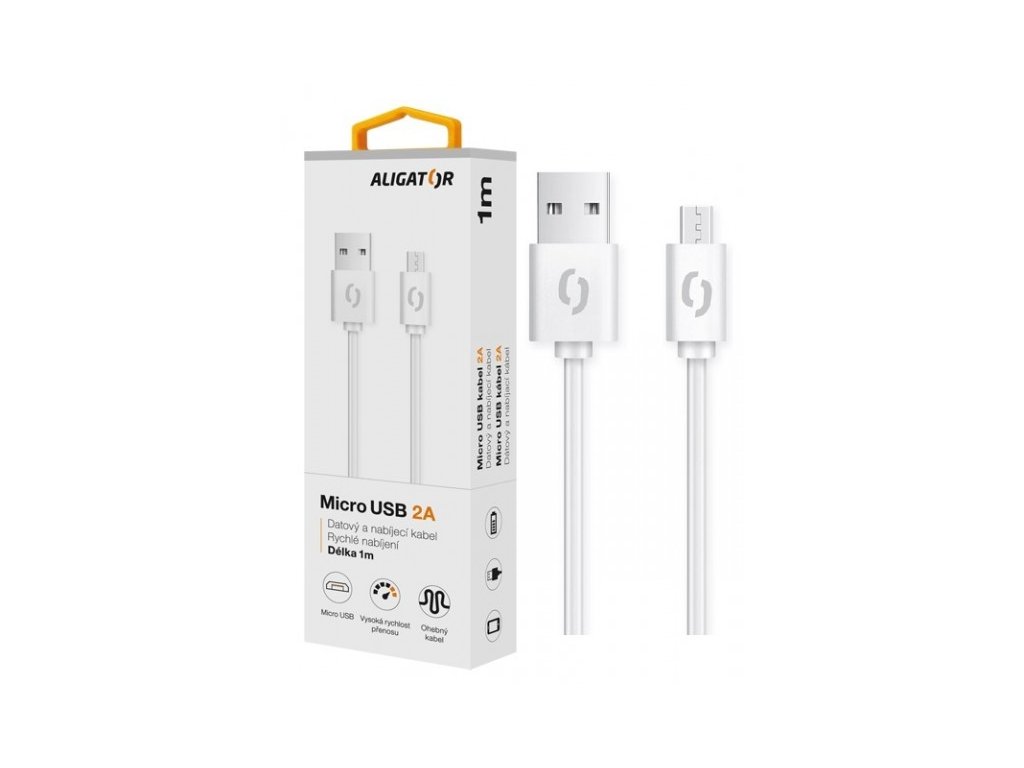 Datový a nabíjecí Micro-USB kabel ALIGATOR: *Vysoce kvalitní konektory *Vysoká rychlost přenosu dat *Možnost rychlého nabíjení 2A *Délka: 1m *Barva: bíláDodatočné parametre