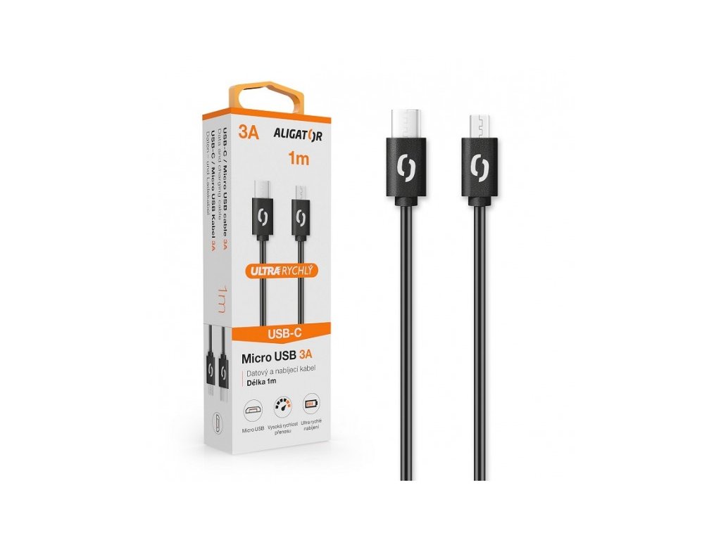 ALIGATOR Datový kabel POWER 3A, USB-C/microUSB černý