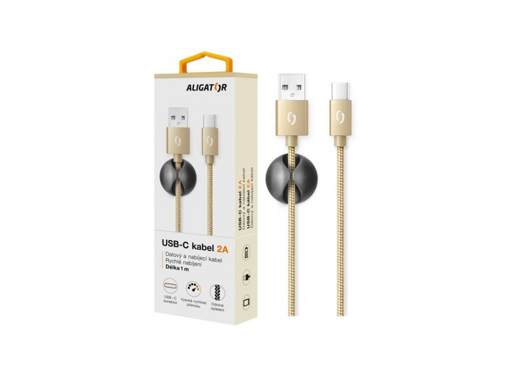 ALIGATOR PREMIUM Datový kabel 2A, USB-C zlatý