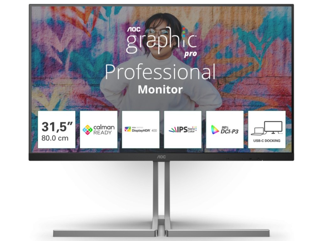 AOC U32U3CV Přesné provedení pro dokonalou grafiku s hardwarově kalibrovanou přesností (Delta E<2), kalibrací calman ready a displejem UHD Nano IPS. *31,5 palců *Nano IPS *UHD *60Hz Typ obrazovky: IPS Úhlopříčka [palce]: 31,5 Rozlišení: 3840x2160 Rozteč bodu [mm]: 0,18159 Obnovovací frekvence [Hz]: 60 Poměr stran: 16:9 Jas [cd/m2]: 400 Kontrast: 1000:1 Odezva [ms]: 4 Pozorovací úhly (Horizontál/Vertikál): 178/178 Počet barev: 1.073B (8bits+FRC) Reproduktory: 3 W x 2 Konektory: *HDMI: HDMI 2.0 x 2 *Digitální HDCP (verze HDMI): HDCP 2.2 *DisplayPort: DisplayPort 1.4 x 1 *Rozhraní USB-C: 1 x USB-C (DP1.4 Alt Mode, USB3.2 Gen 2 - upstream, 10Gbps, w/ HDR, Max. PD 96W Smart Power, HDR, Adaptive Sync), 1 x USB-C (USB3.2 Gen 2 - upstream, 10Gbps), 1 x USB-C (USB3.2 Gen 2 - downstream, 10Gbps, power supply up to 15W) *Vysokorychlostní rozbočovač USB: USB 3.2 (Gen 2) *Porty USB pro downstream: USB-A x4, USB-C x1 (Power supply up to 15W) *RJ45: 1x 10M/100M/1G Napájení: Interní, 100 - 240V 50/60Hz Spotřeba [W]: 46 Stand By režim [W]: 0,3 Třída energetické náročnosti: F Montáž na zeď: 100x100mm Mechanické části: *Naklonění -6.5° ~ 23° *Natočení -15° ~15° *Otočení na výšku -90° ~ 90° *Nastavení výšky (mm) 150mm Barva: Černá, Stříbrná Rozměry: 714,4 x(459,3~609,3) × 258,6mm Hmotnost [kg]: 8,46 Záruka: 3 roky Stránka výrobce: https://aoc.com/cz/products/monitors/u32u3cvDodatočné parametre