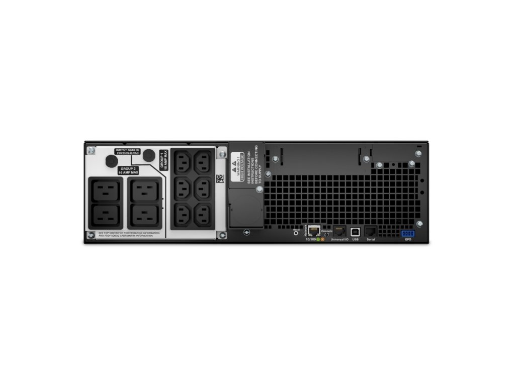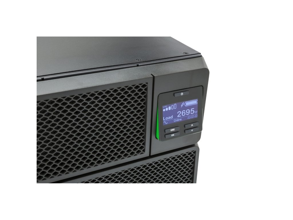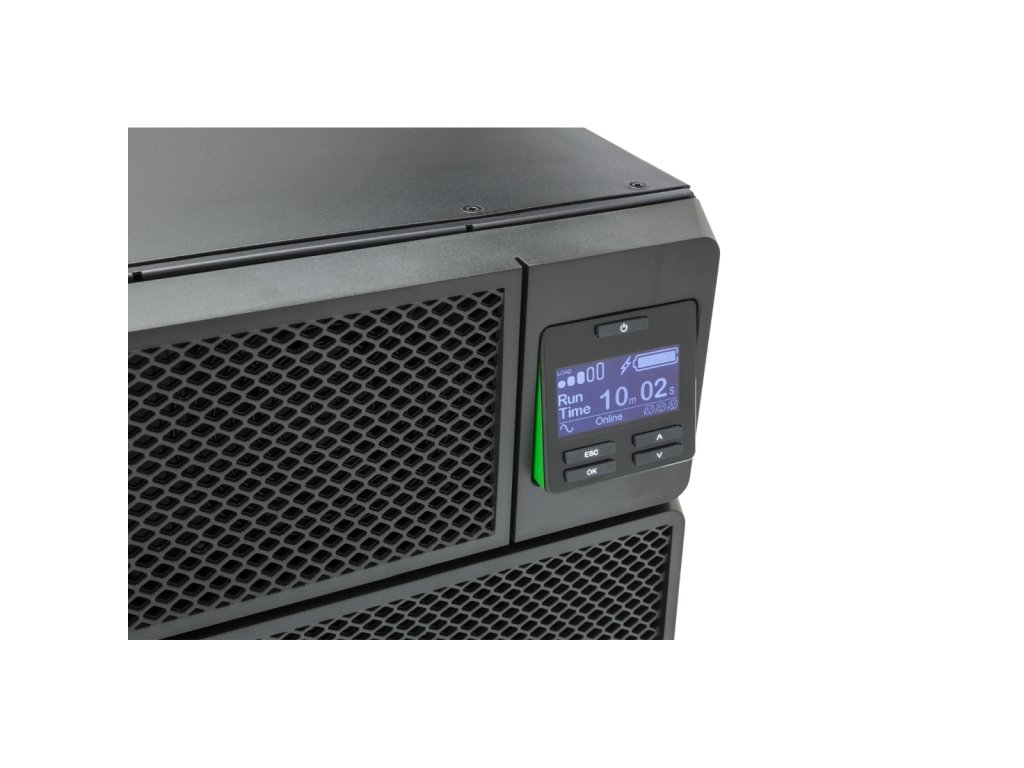 VÝSTUP Kapacita výstupního výkonu [W]: 4500 Kapacita výstupního výkonu [VA]: 5000 Výstupní napětí [V]: 230 V Topologie: Online s dvojí konverzí Typ křivky: Sinusoida Výstupní přípojky: *6 IEC 60320 C13 *2 IEC Jumpers *4 IEC 60320 C19 VSTUP Vstupní napětí [V]: 230 V Kmitočet na vstupu [Hz]: 50/60 Hz +/- 3 Hz synchr. se sítí BATERIE A DOBA BĚHU Typ baterie: Olověná baterie Obvyklá doba nabíjení [Hod]: 1,5 Záložní čas: 3 min 59 s při plném zatížení KOMUNIKACE A SPRÁVA Indikátory: Multifunkční lcd stavová a kontrolní konzola Zvukové upozornění: Akustická a vizuální varování seřazená podle závažnosti události FYZICKÉ Maximální výška [cm]: 13 Maximální šířka [cm]: 43,2 Maximální hloubka [cm]: 71,94 Čistá hmotnost [kg]: 54,43 Barva: černá Provozní teplota [°C]: 0-40 Hlučnost [dB]: 55Dodatočné parametre