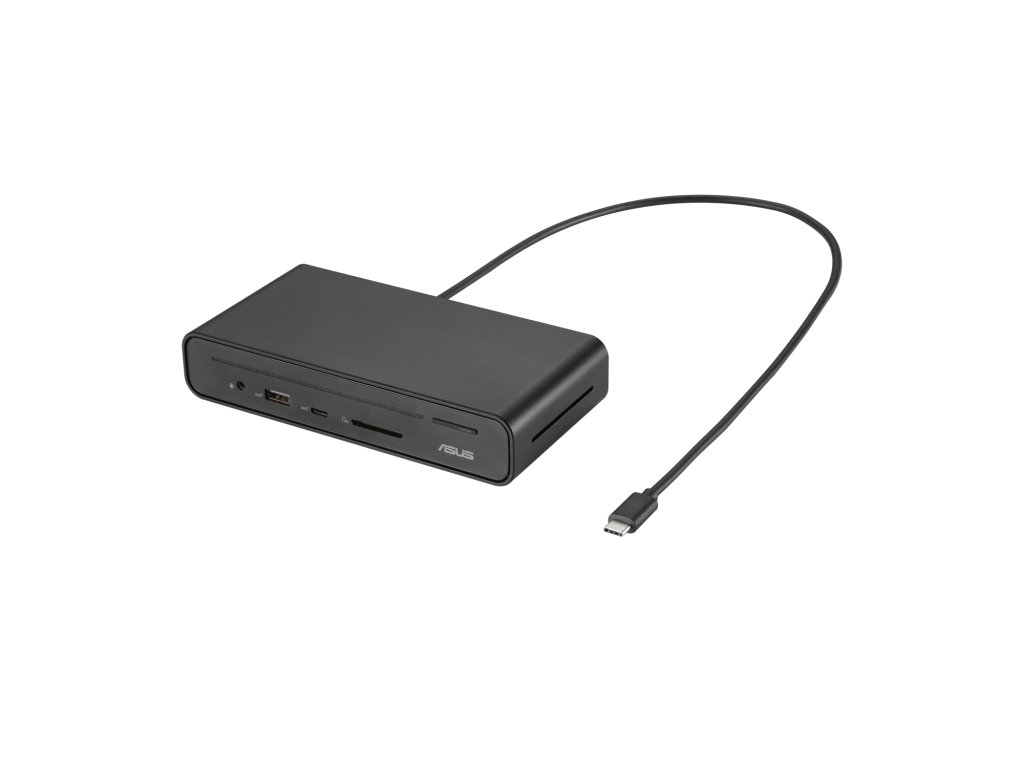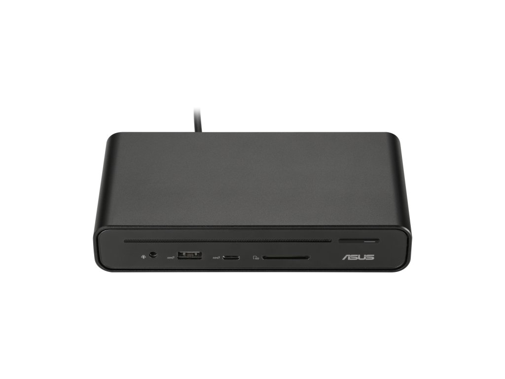 ASUS Triple Display USB-C Dock DC300 ASUS Triple Display USB-C Dock je elegantní a kompaktní zařízení, které zjednodušuje připojení notebooku. Napájejte notebook jediným kabelem, připojte se k síti a periferním zařízením a pracujte na více úlohách až se čtyřmi monitory1 - včetně monitoru notebooku a tří externích monitorů. Má také integrovanou čtečku karet SD pro nejrůznější pracovní scénáře. Jednoduše řečeno, dokovací stanice ASUS Triple Display USB-C Dock udrží váš stůl čistý, uklizený a organizovaný a zároveň vás v mžiku připraví na práci. Porty: *1 x USB 3.2 Gen2 Type-C Upstream port for computer sideport (10Gbps / DP1.4 / output: up to 85W) *1 x USB 3.2 Gen2 Type-A ports (10Gbps) *1 x USB 3.2 Gen2 Type-C port (10Gbps/PD-in 100W/5V/1.5A) *1 x HDMI with a maximum output resolution of 3840x2160 @60Hz,FHD @144Hz *2 x USB 3.2 Gen1 Type-A ports (5Gbps) *1 x DisplayPort 1.4 Rozlišení videa: *HDMI Single Ext. Output: 3840×2160@60Hz *Display Port Single Ext. Output: 3840×2160@60Hz *USB-C Single Ext. Output: 3840×2160@60Hz Napájení: 150W DC20.0V / 7.5A Délka kabelu: 65 cm Barva: černá Hmotnost: 514±5 g (dok) | 95±5 g (stojan) Rozměry: 160 x 80 x 32 mm Materiál: plast | kovDodatočné parametre