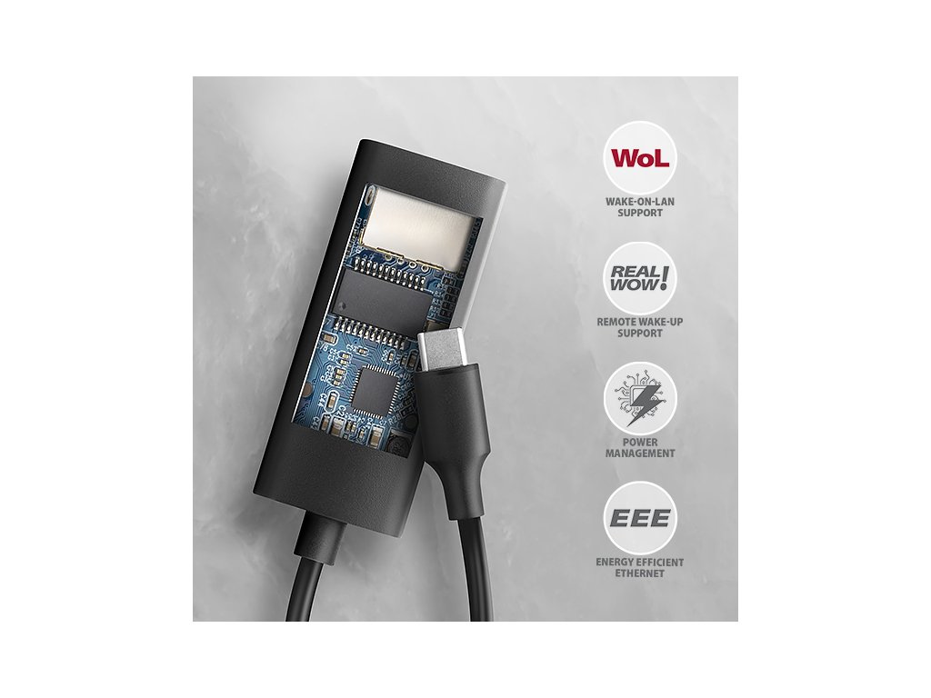 Externí síťová karta AXAGON ADE-ARC snadno přemění USB-C 3.2 Gen 1 port na Gigabit Ethernet port. USB síťovka kompatibilní s rychlostmi 10/100/1000 Mbit/s rozšíří počítač o rychlé a stabilní síťové připojení, doplní chybějící síťový RJ-45 konektor, přidá další síťovou kartu nebo nahradí původní nefunkční síťové připojení. LAN adaptér nabízí kromě gigabitové propustnosti širokou škálu funkcí např. IPv4/IPv6 checksum pro snížení zátěže CPU kontrolními součty, crossover detekci a autokorekci, TCP large send offload, podporu různých módů Wake-on-LAN funkce, práce s VLAN nebo pokročilé funkce Power Managementu. Díky kompaktním rozměrům a minimální hmotnosti je to ideální doplněk pro přenosné počítače a další mobilní zařízení. Podpora současných verzí operačních systémů Windows, macOS, Linux, Chrome OS nebo Android jej dovoluje použít pro jakýkoliv stolní počítač, notebook nebo ultrabook vybavený moderním oboustranným USB Type C konektorem. Ve Windows od verze 8.1 výše umožňuje adaptér snadnou automatickou instalaci bez nutnosti připojení k internetu. Ethernet adaptér využijí také uživatelé tabletů nebo mobilních telefonů podporujících možnost kabelového Ethernet připojení. Vstup: • USB 5Gbps (USB 3.2 Gen 1 / USB 3.0). • Zpětně kompatibilní s USB 480Mbps (USB 2.0) a USB 1.1. • Kompatibilní s Thunderbolt 3 a 4. • Připojení k počítači, mobilnímu telefonu nebo tabletu přes USB konektor typu C male. Výstup: • Rozhraní Gigabit Ethernet s RJ-45 konektorem pro připojení UTP nebo STP kabelem. • Podporované přenosové rychlosti Ethernet rozhraní 10/100/1000 Mb/s. • Podporované specifikace IEEE 802.3 10Base-T, IEEE 802.3u 100Base-TX, IEEE 802.3ab 1000Base-T. • 10/100/1000 Mb/s autodetekce. • Podpora IPv4/IPv6 packet Checksum Offload Engine (COE) pro snížení zatížení procesoru včetně IPv4 IP/TCP/UDP/ICMP/IGMP & IPv6 TCP/UDP/ICMPv6 kontroly a generování kontrolního součtu. • Podpora TCP Large Send Offload V1 a V2. • Podpora IEEE 802.1P Layer 2 priority encoding & decoding. • Podpora IEEE 802.1Q VLAN tagging. • Podpora IEEE 802.3az EEE (Energy Efficient Ethernet) - snížení spotřeby v klidovém stavu. • Podpora Jumbo frame. • Podpora full-duplex přenosů s IEEE 802.3x flow control i half-duplex přenosů s back-pressure flow control. • Podpora Auto MDI/MDIX - crossover detekce a autokorekce eliminuje potřebu crossover kabelů. • Podpora hardwarového Cyclic Redundancy Check (CRC) pro odhalení chyb přenosu. • Podpora pair swap/polarity/skew korekce. Další vlastnosti: • Plná podpora Plug and Play a Hot Plug. • Podpora CDC-ECM – pro automatickou instalaci ovladačů napříč různými OS. • Napájení adaptéru po USB sběrnici (bus power) - není potřeba žádné přídavné napájení. • Dvě LED diody pro indikaci aktivity sítě a připojení adaptéru k síti. • Rozměry 58 x 24 x 16 mm. • Hmotnost 20 g (vč. kabelu). • Délka USB kabelu 15 cm. • Použit čipset Realtek RTL8153. Podpora funkce Wake-on-LAN v různých módech: • Podpora režimu spánku a vzdáleného probuzení přes Magic paket, Microsoft Wakeup Frame, Microsoft Wake Packet Detection a také Link Change wake-up. • Podpora standardu ECMA-393 proxZzzy® for sleeping hosts pro správu síťového připojení spících hostů pomocí proxy serverů. • Podpora technologie RealWoW! umožňuje vzdálené probouzení skrze internet. Pokročilé funkce Power Managementu: Adaptér podporuje pokročilou správu napájení redukující ztráty při klidovém stavu nebo lehkém provozu na síti. Dále podporuje pokročilou úsporu energie při odpojení Ethernet kabelu. • Podpora Advanced Configuration Power management Interface (ACPI). • Podpora Power Management offload (ARP & NS). • Podpora Microsoft Always On Always Connected (AOAC). • Podpora Intel Converged Platform Power Management (CPPM). • Podpora Link Power Management (LPM). • Podpora Operating System-directed Power Management (OSPM). • Podpora IEEE 802.3az EEE (Energy Efficient Ethernet). Podporované operační systémy: • Windows, macOS, Linux, Chrome OS a Android (POZOR - nutno ověřit u výrobce Android zařízení, zda je podporována možnost Ethernet připojení). Balení v kartonové krabičce s otvorem pro zavěšení obsahuje: • USB - Gigabit Ethernet adaptér s USB-C kabelem 15 cm napevno, • vícejazyčný návod CZ/DE/DK/ENG/ESP/FIN/FR/GR/HR/HU/IT/NL/PL/PT/RO/SK/SWE/TR/UA/BG/CN/ARA.Dodatočné parametre