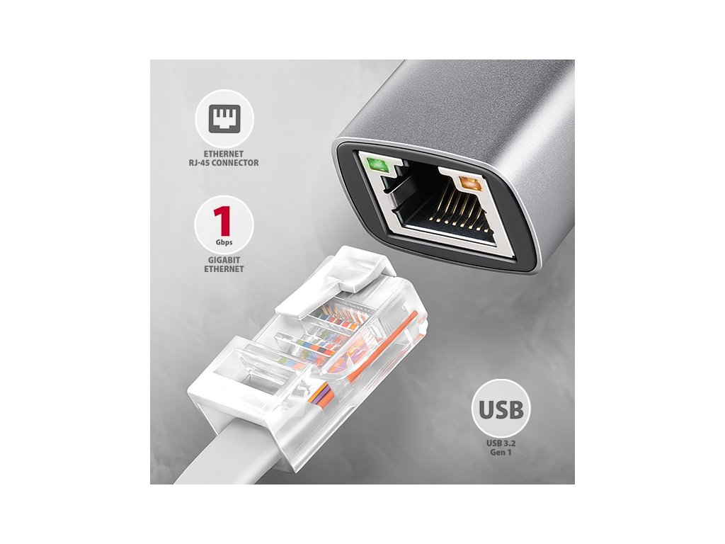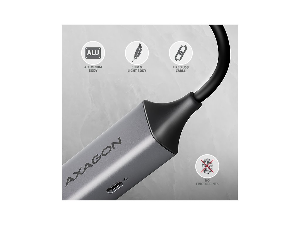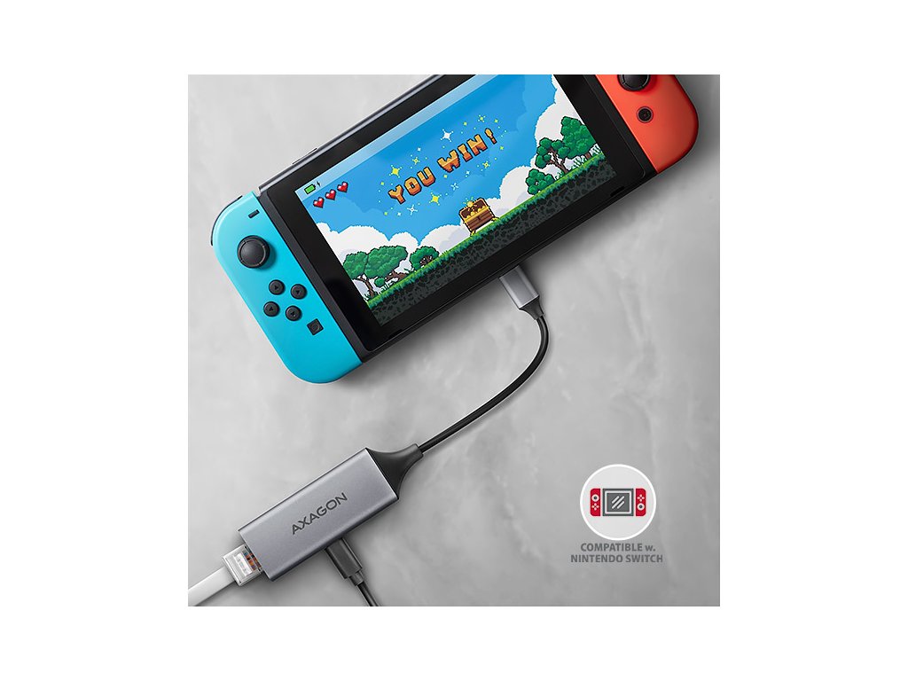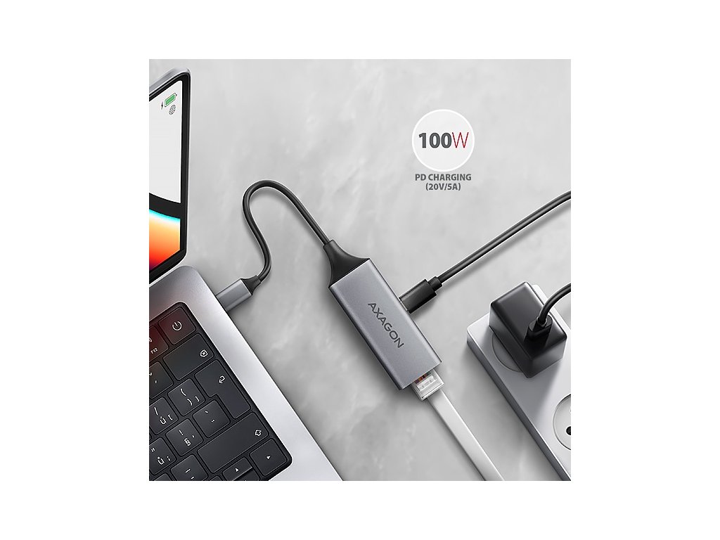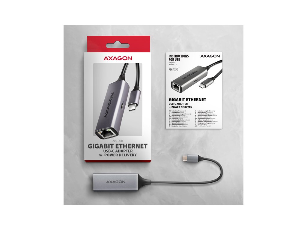 AXAGON ADE-TXPD, USB-C 3.2 Gen 1 - Gigabit Ethernet síťová karta, Asix AX88179, PD 100W, auto instal