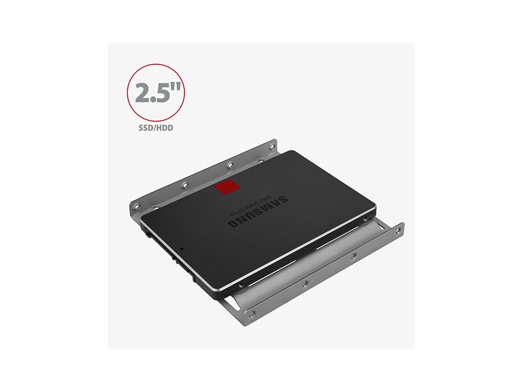 Kovový rámeček AXAGON RHD-125S umožňuje montáž 2.5" HDD nebo SSD disku do 3.5" pozice PC skříně. Tato jednoduchá redukce elegantně vyřeší problém s umístěním 2.5" pevného disku nebo SSD ve standardní počítačové skříni. Lze použít všechny SSD i pevné disky, výška disku není omezena. Přesné otvory a dodávané šroubky zajistí snadnou a bezproblémovou montáž rámečku do počítačové skříně. Kovová konstrukce a profil rámečku napomáhají odvodu tepla z disku. Vlastnosti: • Podpora 2.5" SSD nebo HDD bez limitu výšky - 7 mm, 9.5 mm, 12.5 mm, 15 mm apod. • Rozměry rámečku a montážní otvory odpovídají standardní 3.5" pozici PC skříně. • Adaptér je vyroben z ocelového plechu a opatřen nástřikem šedou barvou. • Rozměry 102 x 98 x 10 mm, hmotnost 68 g. Balení v kartónové krabičce s otvorem pro zavěšení obsahuje: • Rámeček pro 2.5" disk, • šroubky a montážní materiál pro montáž disku a rámečku, • multijazyčný manuál CZ/DE/DK/ENG/ESP/FIN/FR/GR/HR/HU/IT/NL/PL/PT/RO/RU/SK/SWE/BG/CN/TR/ARA.Dodatočné parametre