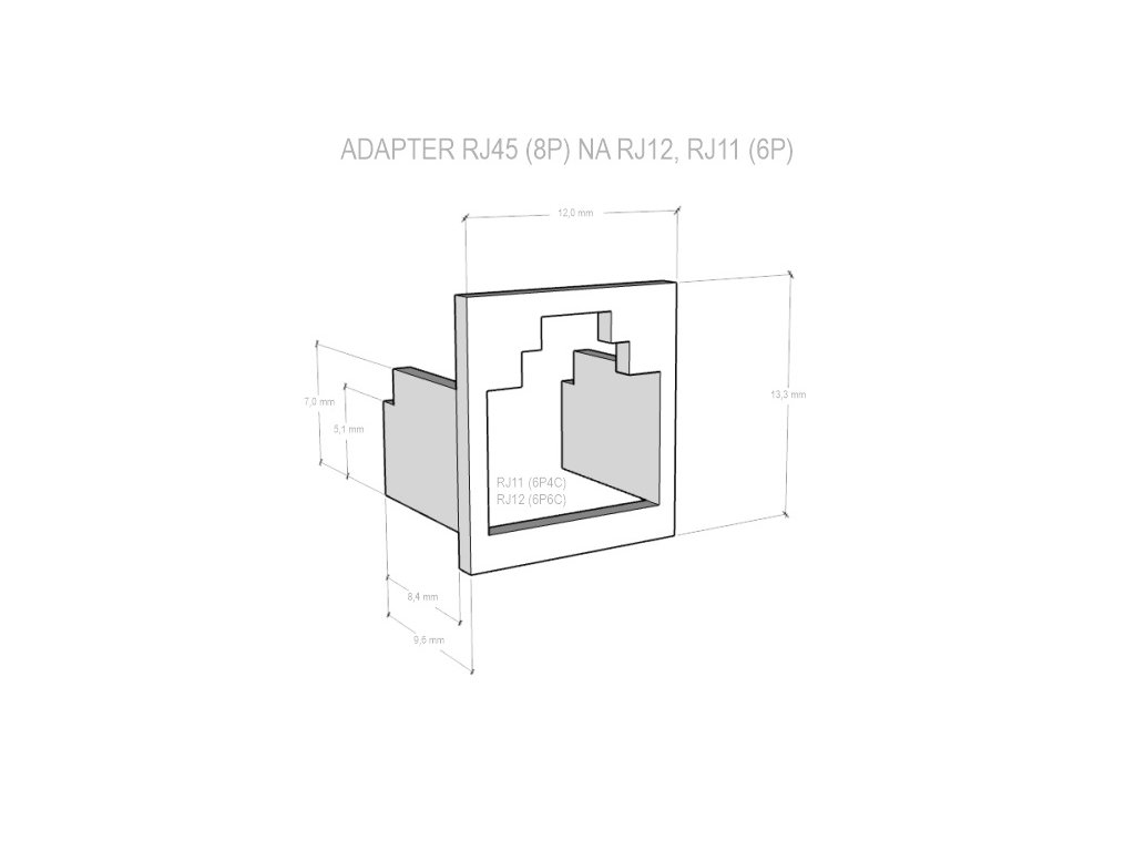 DATACOM Adaptér RJ45 na RJ12 (RJ11) bílá / redukční vložka (20 ks) PŘEHLED Redukční vložka RJ12 (RJ11) určený do RJ45 portu. Vhodný pomocník při potřebě vložení RJ12 (RJ11) konektoru do RJ45 portu. Piny 1 a 8 zůstanou chráněny proti poškození. Barva * bílá Foto pouze ilustrační, barva je skutečně bílá !Dodatočné parametre