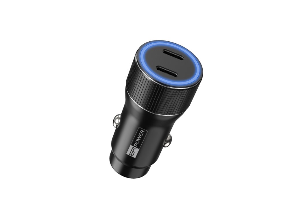 ER 40W USB-C PD+QC 3.0 kovová duální autonabíječka