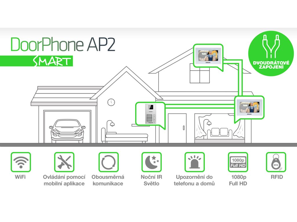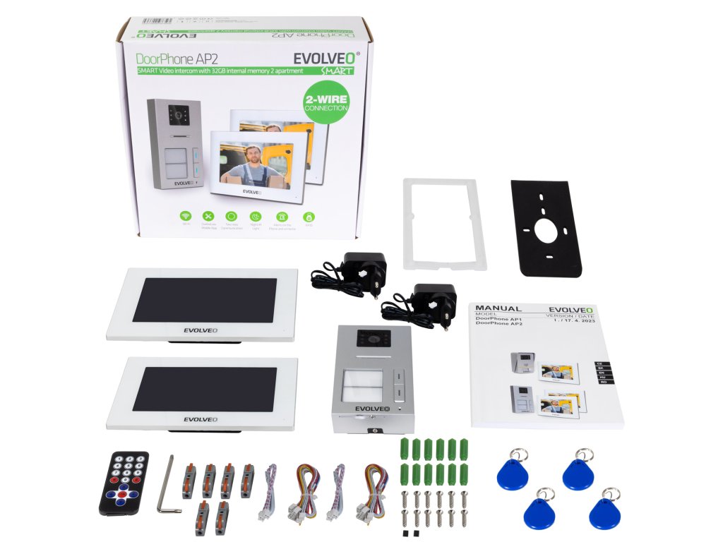 • EVOLVEO DoorPhone AP2-2 drátový videotelefon pro dva byty s aplikací, černý (PartNo: DPAP2-B) • EVOLVEO DoorPhone AP2-2 drátový videotelefon pro dva byty s aplikací, bílý (PartNo: DPAP2-W)TECHNICKÁ PODPORA A SERVIS: