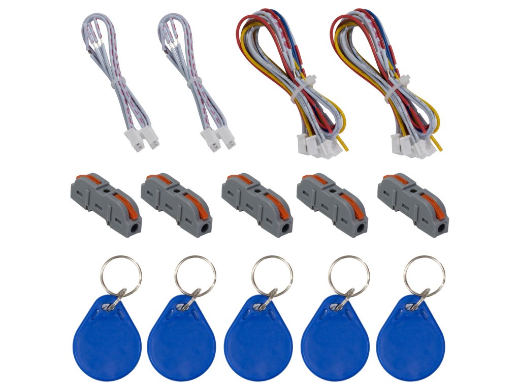 • 2 x 7” monitor • 1 x vstupní panel pro 2 byty • 1 x napájecí zdroj • 1x sada šroubů a hmoždinek • 1x sada kabelů pro připojení jednotek • 1x IR ovladač pro nastavení RFID čtečky • 5 x klíčenky (RFID) • 1x Uživatelský manuálPŘÍPLATKOVÉ PŘÍSLUŠENSTVÍ: