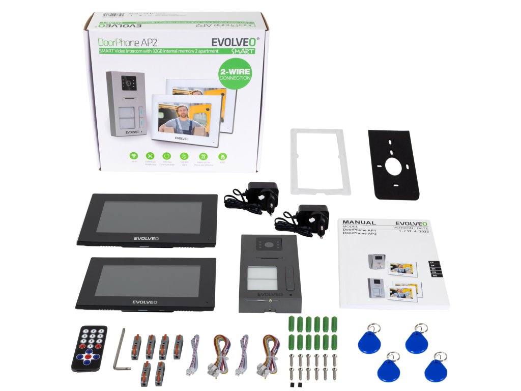 • EVOLVEO DoorPhone AP2-2 drátový videotelefon pro dva byty s aplikací, černý (PartNo: DPAP2-B) • EVOLVEO DoorPhone AP2-2 drátový videotelefon pro dva byty s aplikací, bílý (PartNo: DPAP2-W)TECHNICKÁ PODPORA A SERVIS: