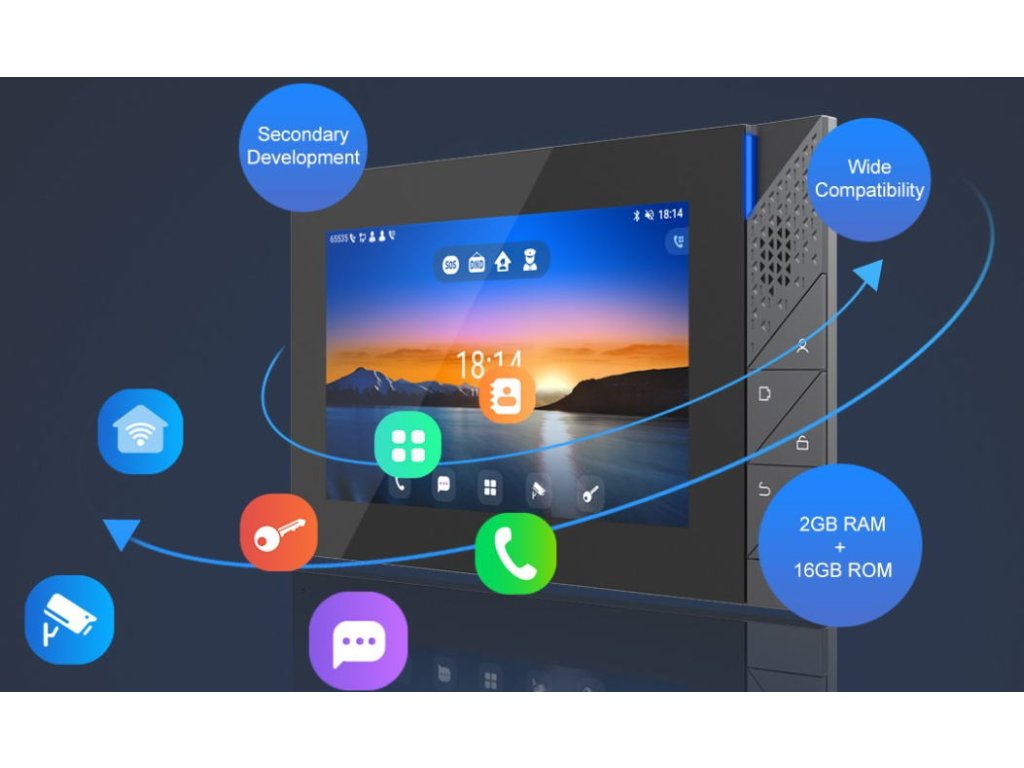 Vnitřní stanice Fanvil i55A má 7 palcovou barevnou dotykovou obrazovku s intuitivním uživatelským rozhraním. Díky výkonným funkcím, jako je vzdálené otevírání dveří a real-time monitorování bezpečnostních zařízení, je ideální i55A jako asistent pro správu objektů, rodinných domů a kancelářských budov. Zařízení i55A je vybaveno systémem Android 9.0 a lze jej snadno integrovat s aplikacemi třetích stran, čímž splňuje požadavky pro přizpůsobení různých aplikací a dalšího vývoje. Stanice poskytuje křišťálově čistý zvuk a uživatelům vysoce kvalitní obousměrnou hands-free komunikaci. Díky videohovorům v rozlišení HD na celé obrazovce mohou uživatelé snadno identifikovat návštěvníky. Díky monitorování v reálném čase lze kontrolovat obraz z kamer na dvorku, skladu a parkovišť. Uživatelé mohou okamžitě zasáhnout, jakmile se objeví jakékoli podezření. I55A je vybaven vestavěným Bluetooth 5.0, který lze použít k přenosu dat, jako je hudba, obrázky a videa. Podporuje bezdrátové připojení díky vestavěné 2,4G/5G WiFi, což přináší menší počet kabelů a snížení nákladů.i55A se vyznačuje bohatými vstupními a výstupními rozhraními, která lze snadno propojit s jinými bezpečnostními zařízeními a přizpůsobit je různým řešením. Hlavní parametry: (1024x600) kapacitní barevný dotykový displej Operační systém Android 9.0 Hliníkový design panelu a pět fyzických tlačítek, spolehlivý a odolný Real-time video z dveřních telefonů s video kodekem H.264 a vysokým rozlišením 1080P HD kvalita hlasu s vestavěným 1,5W dvěma reproduktory a akustickým potlačením ozvěny Vestavěné Bluetooth 5.0 a WiFi 2,4 GHz/5G Podpora RS-485, 8 rozhraní alarmových vstupů a 2 vestavěná relé Podpora PoE, podpora instalace na stěnuDodatočné parametre