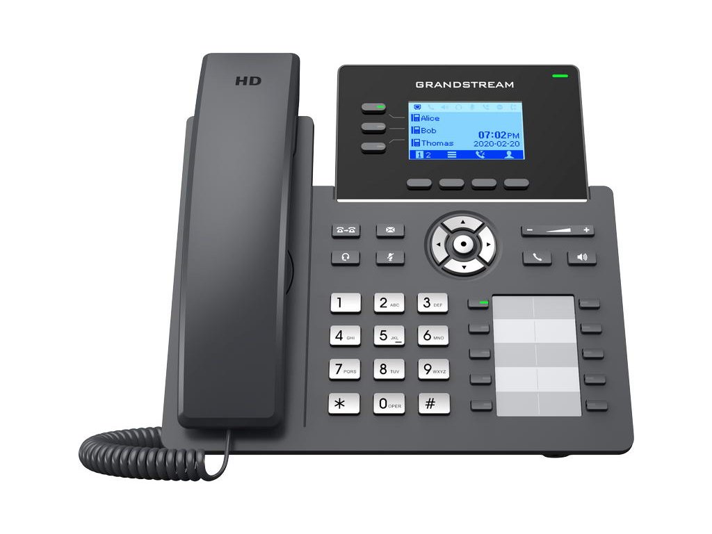 Součástí nové Grandstream GRP řady IP telefonů je i GRP2604P. Jde o základní třílinkový model navržený pro hromadné nasazení a snadný management. Vyznačuje se elegantním designem a sadou funkcí nové generace, včetně 5 cestné audiokonference pro maximální produktivitu, integrovaného PoE napájení, HD audio v reproduktoru i sluchátku umožňuje uživatelům komunikovat v maximální srozumitelnosti a kvalitě, 10 BLF tlačítek pro rychlé volby, podporou EHS pro náhlavní soupravy Plantronics, Jabra a Sennheiser , vícejazyčnou lokalizaci včetně české a slovenské. Řada GRP zahrnuje funkce zabezpečení na enterprise úrovni, včetně zabezpečeného bootování, 2 firmware images a šifrovaného úložiště dat. Celou řadu GRP lze jednoduše vzdáleně spravovat a konfigurovat free nástrojem Grandstream’s Device Management System (GDMS), jenž poskytuje centralizované rozhraní pro konfiguraci, provisioning, správu a monitorování nasazených koncových bodů Grandstream. GRP2604P je postavený pro potřeby pracovníků ať už jsou na pracovišti nebo na home office a je navržený pro snadné nasazení v podnicích, poskytovatelích služeb a na dalších velkoobjemových trzích a nabízí snadno použitelný a snadno nasaditelný hlasový koncový bod. Hlavní funkce: 6 SIP účty, 3 linky, až 3 hovory 10 BLF tlačítek pro rychlé volby, štítek lze vytvořit a vytisknout přímo z WebGUI telefonu viz. video návod. Jednoduše sestavitelné 5cestné audiokonference Dva switched 10/100/1000 Mb/s ethernetové porty Plně duplexní hlasitý reproduktor se HD zvukem pro maximalizaci kvalitu a čistotu zvuku Noise shield technologií pro minimalizaci hluku v pozadí Umožňuje PoE napájení telefonu Podpora Electronic Hook Switch (EHS) pro náhlavní soupravy Plantronics, Jabra a Sennheiser Ochrana na enterprise úrovni, včetně zabezpečeného bootování, 2 firmware images a šifrovaného úložiště dat GDMS online správa a provisioning zařízení Vyměnitelný čelní panel pro snadné přizpůsobení loga Balení neobsahuje napájecí adaptérDodatočné parametre