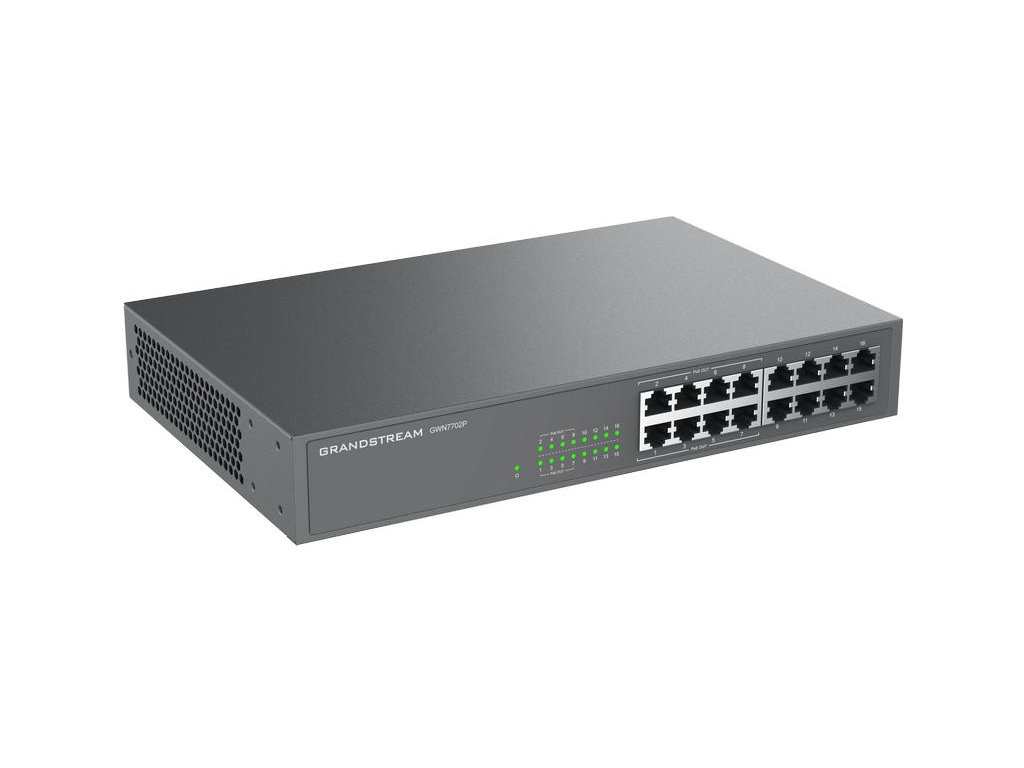 Grandstream GWN7702P je unmanaged síťový switch, který přináší rychlé a cenově dostupné řešení přidání vysokorychlostní gigabitové konektivity do domácích kanceláří a malých/středních podniků. Nevyžaduje žádnou konfiguraci ani instalaci, nabízí stolní a nástěnný design a poskytuje automatické MDI/MDIX aby se eliminovala potřeba křížených kabelů. Každý port podporuje automatické nastavení Ethernet komunikace, které umožňuje rozpoznat rychlost připojení libovolného síťového zařízení 10/100/1000 Mb/s a inteligentně se nastavit pro kompatibilitu a optimální výkon. Tento model podporuje PoE (Power-over-Ethernet) kompatibilní s IEEE 802.3af/at, poskytují porty s inteligentním dynamickým výstupem pro napájení IP telefonů, IP kamer, Wi-Fi přístupových bodů a dalších PoE koncových bodů. Hlavní parametry: 16 portů 10/100/1000 Mb/s 8 PoE portů - IEEE 802.3af, IEEE 802.3at, 30W na port, celkový budget 138W Kovový kryt AUTO Negotiation AUTO MDI/MDIX LED indikátory u portů Link/Activity/SpeedDodatočné parametre