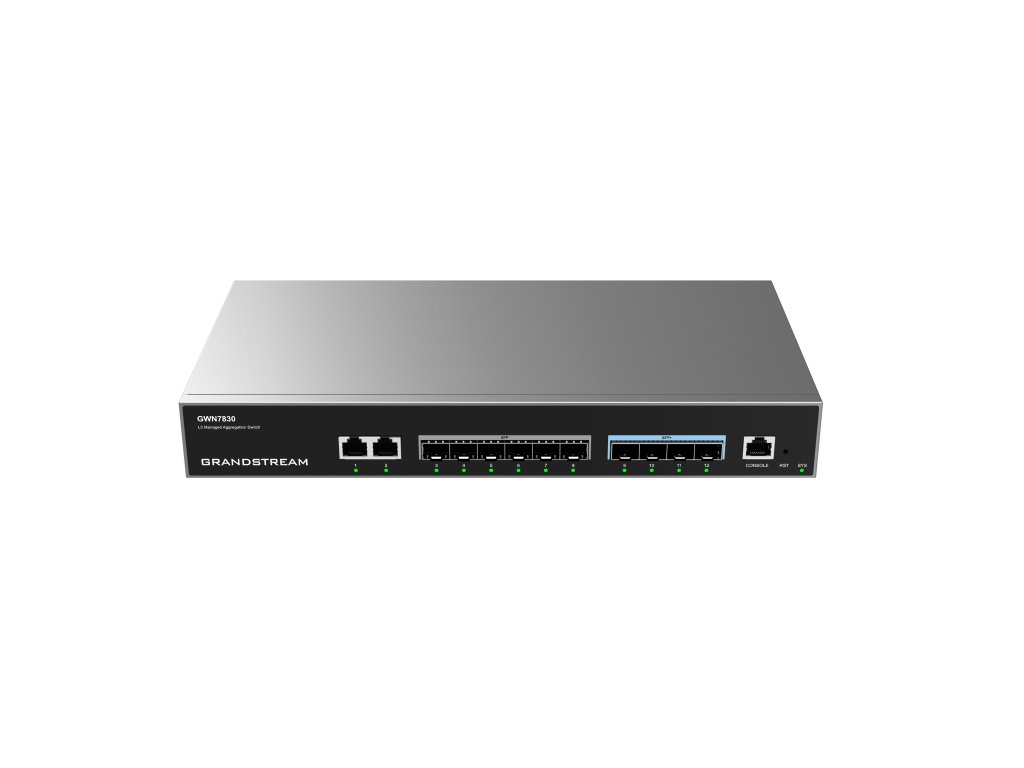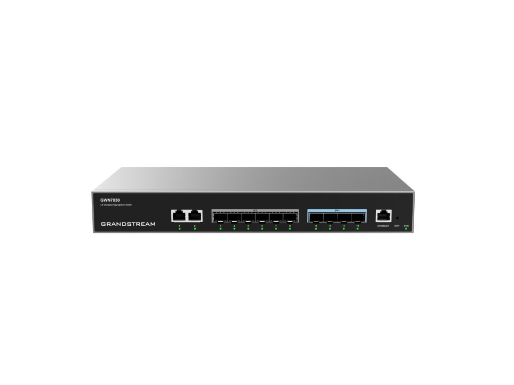 Grandstream GWN7830 je agregační plně spravovatelný switch na 3. vrstvě, který podnikům umožňuje budovat škálovatelnou, bezpečnou, vysoce výkonnou a chytrou podnikovou síť. Podporuje pokročilé VLAN pro flexibilní a sofistikovanou segmentaci provozu, pokročilé QoS pro upřednostňování síťového provozu, IGMP/MLD Snooping pro optimalizaci výkonu sítě, komplexní možnosti zabezpečení proti potenciálním útokům. Switch GWN7830 může být spravovány mnoha způsoby, včetně webového uživatelského rozhraní a CLI rozhraní příkazového řádku. A také podporuje GWN.Cloud a GWN Manager, cloudovou a on-premise platformou pro správu sítě od společnosti Grandstream. S kompletní kvalitou služeb a flexibilním nastavením zabezpečení jsou switche řady GWN783X nejvýhodnější agregační řízené switche podnikové úrovně. Hlavní parametry: 2 x Gigabit Ethernet porty, 6 x Gigabit SFP porty a 4 x 10Gigabit SFP+ porty Podpora nasazení v sítích IPv6 a IPv4 ARP Inspection, IP Source Guard, DoS protection, port security & DHCP snooping Vestavěný kontroler pro správu switche; GWN.Cloud a GWN Manager, cloudová a on-premise platforma pro správu sítě od společnosti Grandstream Vestavěná QoS umožňuje prioritizaci síťového provozuDodatočné parametre