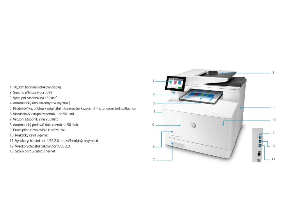 Malá a mocná: nejmenší multifunkční tiskárna Enterprise od společnosti HP * Snadné použití, snadná správa * Nejzabezpečenější tisk na světě * Zvýšená produktivita pro podporu pracovních skupin * Udržitelnost je chytrou volbou pro každou firmu - Tisk, kopírování, skenování, faxování - 10,9cm barevný kapacitní dotykový ovládací panel - Laser Formát tiskárny: A4 Rozlišení[DPI]: Černobíle (nejlepší): Až 600 x 600 dpi; Barevně (nejlepší): Až 600 x 600 dpi; Technologie: HP ImageREt 3600, vyšší (600 x 600 dpi), detailní (1 200 x 1 200 dpi), náhled (300 x 300 dpi) Rychlost černého tisku [str./min.]: Až 27 str./min. Rychlost barevného tisku [str./min.]: Až 27 str./min. Tisk první strany [sec.]: Černobíle (A4, připraveno): Již za 9,5 s; Barevně (A4, připraveno): Již za 11,0 s Max. měsíční zatížení [str.]: Až 55 000 stran A4; Doporučený počet stran za měsíc: 900 až 4 800 stran Paměť: Standardní: 2 GB; Maximální: 2 GB Oboustranný tisk: Automaticky (výchozí) Automatický podavač pro skenování: ano Automatický duplexní podavač pro skenování: Ano, automatický podavač dokumentů s duplexováním při jednom podání Kapacita zásobníku [str.]: Standardní: 2; Maximální: 3 *Standardní vstup: Víceúčelový zásobník na 50 listů, vstupní zásobník na 250 listů *Standardní výstup: Výstupní zásobník na 150 listů *Volitelný vstup: Volitelný zásobník na 550 listů *ADF (automatický podavač dokumentů): Standardně, 50 listů Rozhraní: *Standardní: 2x vysokorychlostní hostitelský port USB 2.0; 1x vysokorychlostní port USB 2.0 pro zařízení; 1x síťový port Gigabit Ethernet 10/100/1000T; 1x fax *Volitelné: Příslušenství HP Jetdirect LAN 8FP31A; Příslušenství HP Jetdirect 3100w BLE/NFC/Wireless 3JN69A *Bezdrátové připojení: Volitelně, po zakoupení bezdrátového hardwarového příslušenství. Jednopásmová bezdrátová stanice a funkce Wi-Fi Direct jsou k dispozici u příslušenství HP Jetdirect 3100w BLE/NFC/Wireless 3JN69A *Možnost mobilního tisku: HP ePrint; Apple AirPrint; Certifikace Mopria; Tisk Wi-Fi Direct; NFC touch-to-print (volitelně); Podpora technologie Roam pro snadný tisk; Tisk PrinterOn Tiskové jazyky: HP PCL 6, HP PCL 5, emulace HP PostScript 3. úrovně, nativní tisk PDF (v1.7), Apple AirPrint Skener: Rychlost skenování Normální (A4): Až 29 str./min. nebo 46 obr./min. (černobíle), až 20 str./min nebo 35 obr./min. (barevně); Oboustranný (A4): Až 46 obr./min (černobíle), až 35 obr./min. (barevně) Technické parametry skeneru Typ skeneru Plochý skener, automatický podavač dokumentů; Technologie skenování: Kontaktní obrazový senzor (CIS); Twain verze: Verze 2.1; Oboustranné skenování prostřednictvím automatického podavače dokumentů: Ano, automatický podavač dokumentů s duplexováním při jednom podání; Maximální velikost skenovaného dokumentu (z plochy, z automatického podavače): 216 x 297 mm; Optické rozlišení skenování: Až 600 dpi Fax: Ano, 33,6 kbps Spotřeba [W]: 581 W (probíhající tisk), 21,9 W (pohotovostní režim), 1,0 W (režim spánku), 0,08 W (automatické vypnutí / ruční zapnutí), 0,08 W (ruční vypnutí) Hlučnost [dB]: Zvukové emise – napájení: 6,1 B(A) (tisk rychlostí 27 obr./min.), Emise akustického tlaku: 49 dB(A) (tisk rychlostí 27 obr./min.) Rozměry [VxŠxH mm]: Min. 415,4 x 472 x 399,8 mm; Maximální: 415,4 x 1 124,4 x 656 mm (plně otevřená tiskárna) Hmotnost [kg]: 23,2 kg Podporované operační systémy: Windows Client OS (32/64bitový): Win10, Win 8.1, Win7 Ultimate; Mobilní operační systém: iOS, Android; Mac: Apple macOS High Sierra v10.13, Apple macOS Mojave v10.14, Apple macOS Catalina v10.15; Samostatný tiskový ovladač PCL6: další informace o podporovaných operačních systémech jsou k dispozici na adrese http://www.support.hp.com, kde zadáte název produktu a vyhledáte ho, pak stačí kliknout na „Uživatelské příručky“, zadat název produktu, vyhledat příslušnou uživatelskou příručku a najít část s podporovanými operačními systémy pro tiskové ovladače UPD PCL6 / PS; Podporované operační systémy: další informace o podporovaných operačních systémech jsou k dispozici na adrese http://www.hp.com/go/upd Obsah balení: Tiskárna HP Color LaserJet Enterprise MFP M480f; Černá originální tonerová kazeta HP LaserJet (cca 2 400 stran), azurová, purpurová, žlutá originální tonerová kazeta HP LaserJet (každá kazeta cca 2 100 stran); Příručka Začínáme; 1x napájecí kabel Záruka: 12 měsícůTiskárna s dynamickým zabezpečením Některé tiskárny HP jsou určeny k provozu pouze s kazetami, které mají nový nebo znovu použitý čip HP nebo elektronické obvody. Tyto tiskárny používají dynamická bezpečnostní opatření k blokování kazet s jiným čipem nebo elektronickým obvodem než HP. Pravidelné aktualizace firmwaru zajišťují účinnost těchto opatření a blokují kazety, které dříve fungovaly. Opakovaně použité čipy a elektronické obvody HP umožňují využít opakovaně použitých, repasovaných či doplněných kazet. Více informací na https://support.hp.com/cz-cs/document/ish_7970978-7967198-16 Získejte po registraci 3letou prodlouženou záruku: https://h41201.www4.hp.com/WMCF.Web/cz/cs/promotion/14227/One/