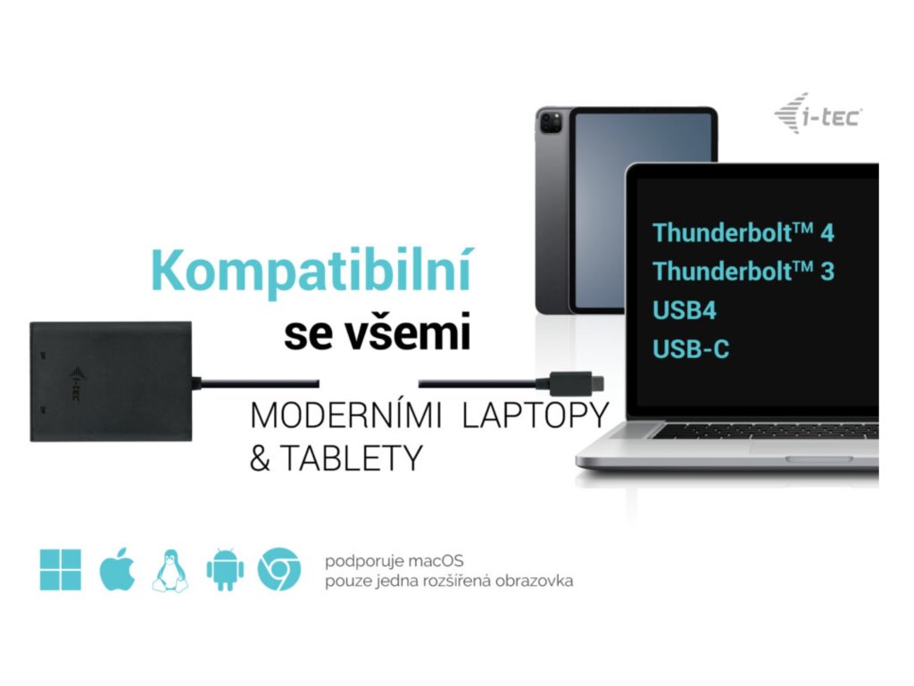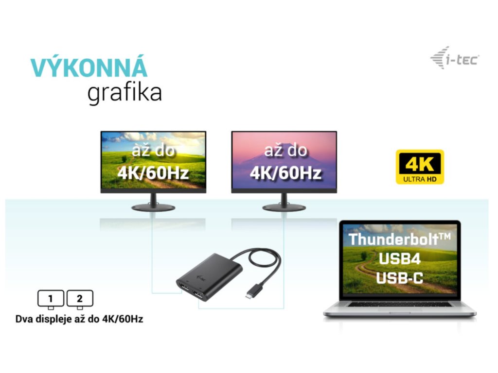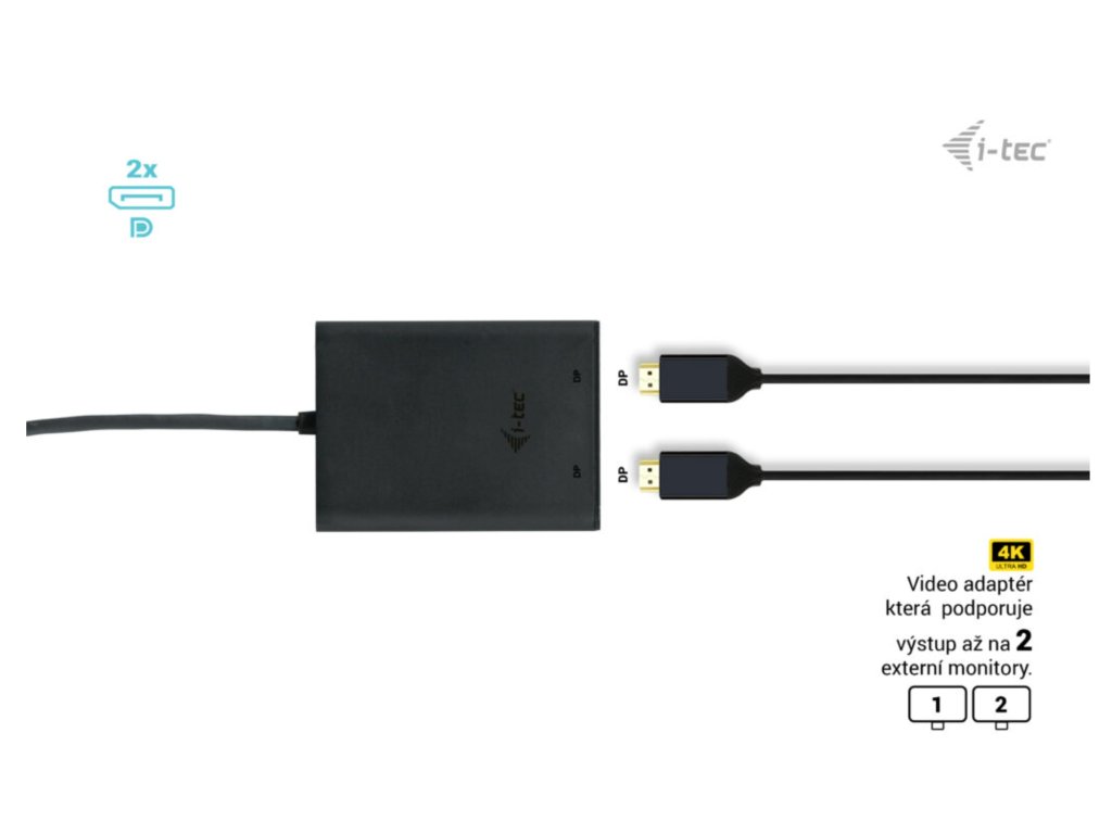 • Výkonný videoadaptér USB-C, ke kterému lze připojit až dva monitory současně • Adaptér podporuje rozlišení až 1x 8K / 30 Hz nebo 2x 4K / 60 Hz • Podpora dvou portů DP • Lze připojit ke všem portům USB-C: USB-C, USB4, Thunderbolt 3 a Thunderbolt 4. • Adaptér je kompatibilní se všemi hlavními operačními systémy • UPOZORNĚNÍ: Při použití se systémem macOS bude podporován pouze jeden externí monitor Popis • Rozšiřte svůj stolní počítač o dva externí monitory DP nebo připojte projektory či televizi k notebooku, tabletu nebo počítači prostřednictvím nového konektoru USB-C nebo Thunderbolt 3. Adaptér podporuje 1x 8K / 30 Hz nebo 2x 4K / 60 Hz*. • Použití je velmi jednoduché, stačí adaptér zapojit do portu USB-C, USB4 nebo Thunderbolt 3/4 na počítači, propojit jej se zobrazovacím zařízením pomocí kabelu DP a můžete ihned začít používat. Instalace ovladače probíhá automaticky ze systému. **Poznámka: operační systém macOS nepodporuje technologii přenosu videa Multi Stream Transport (MST), což znamená, že v případě připojení k systému macOS bude na obou připojených monitorech promítán stejný obraz. Specifikace • 1x integrovaný kabel USB-C pro připojení k hostitelskému zařízení (30 cm) • Technologie grafického adaptéru: USB-C (MST) • Video porty: 2x DP Podporovaná rozlišení: Hostitelské zařízení s podporou DisplayPort 1.2: • 1 monitor – 1x Display Port › až 4K/60Hz • 1 monitor – 1x DisplayPort › až QHD/144Hz • 2 monitory – 1x Display Port + 1x Display Port › až 2x 4K/30Hz Hostitelské zařízení s podporou DisplayPort 1.4: • 1 monitor – 1x DP › až 8K/30Hz • 1 monitor – 1x DP › až 4K/120Hz nebo 1440p/240Hz nebo 1080p/360Hz • 2 monitory – 1x DP + 1x DP › až 2x 4K/60Hz • Operační systém: Windows 11, Windows 10, macOS*, iPadOS**, Android**, Chrome OS a Linux s nejnovějšími aktualizacemi. • Rozměry výrobku: 70 x 60 x 15 mm • Hmotnost výrobku: 53 g • Rozměry balení: 180 x 130 x 25 mm • Hmotnost balení: 131 g SYSTÉMOVÉ POŽADAVKY Hardwarové požadavky: • Zařízení s dostupným portem USB-C nebo Thunderbolt™3 Požadavky na výstup videa: Výstupní rozhraní USB 3.0 a USB 3.0: • Zařízení s dostupným portem USB-C s podporou „DisplayPort Alternate Mode“ nebo s portem Thunderbolt™3 Operační systém: • Windows 11, Windows 10, macOS*, iPadOS**, Android**, Chrome OS a Linux s nejnovějšími aktualizacemi. ** Systém macOS nepodporuje technologii Multi Stream Transport (MST). Připojení dvou monitorů ke stanici prostřednictvím portů DisplayPort v systému macOS způsobí, že oba monitory budou zobrazovat stejný obraz. *** Systémy iPadOS, Android nepodporují technologii přenosu obrazu na více obrazovek ani možnost rozšířené obrazovky. To znamená, že při připojení k externímu monitoru se zobrazí pouze zrcadlená obrazovka. (Neplatí pro zařízení Android s rozšířením DEX a Easy Projection). Obsah balení: • Produkt • ManuálDodatočné parametre