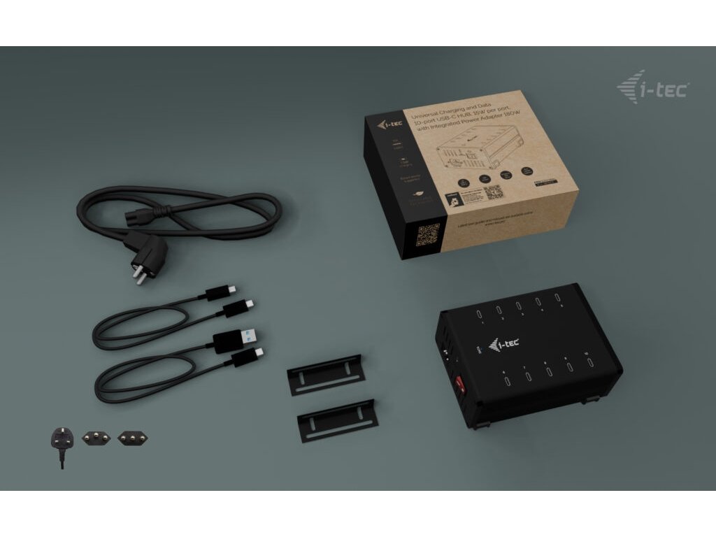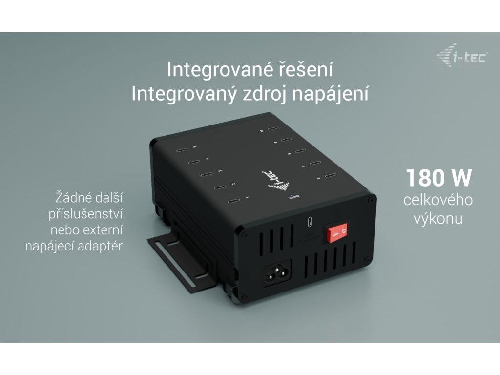 i-tec USB-C/USB-A Metal Charging + Data HUB, 15W/port, 10x USB-C, 180W