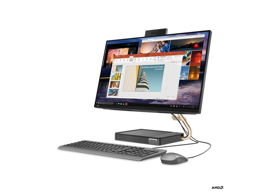 Model: Lenovo IdeaCentre AIO 5 24ALC6 Operační systém: Windows 10 Home 64, Czech / Slovak / English Procesor: AMD Ryzen 5 5500U (6C / 12T, 2.1 / 4.0GHz, 3MB L2 / 8MB L3) Grafika: Integrated AMD Radeon Graphics Paměť: 12 GB (4GB + 8GB SO-DIMM DDR4-3200) Pevný disk: 512GB SSD M.2 2280 PCIe NVMe Display: 23.8" FHD (1920x1080) IPS 250nits Dotykový: ne Optická mechanika: ne Webkamera: 720p Reproduktor: 3Wx2 + 5W, JBL Brand Síť: *Integrated 100/1000M *11ax, 2x2 *Bluetooth 5.0 Zadní porty: *1x Ethernet (RJ-45) *2x USB 2.0 *1x HDMI-out 1.4 *1x power connector *1x headphone / microphone combo jack (3.5mm) *1x HDMI-in 1.4 *3x USB 3.2 Gen 2 Klávesnice a myš Calliope Wireless Keyboard, Black, Czech / Slovak + Calliope Wireless Mouse, Black Rozměry: 541.2 x 185 x 437.79 mm Hmotnost: 6,81 kg Barva: Graphite Grey Napájení: 135W 89% Adapter Black Záruka: 24 měsíců Odkaz na stránku výrobce: https://psref.lenovo.com/Detail/IdeaCentre/IdeaCentre_AIO_5_24ALC6?M=F0G2000TCK Vše o AMD procesorech zde: https://amd.atcomp.czDodatočné parametre