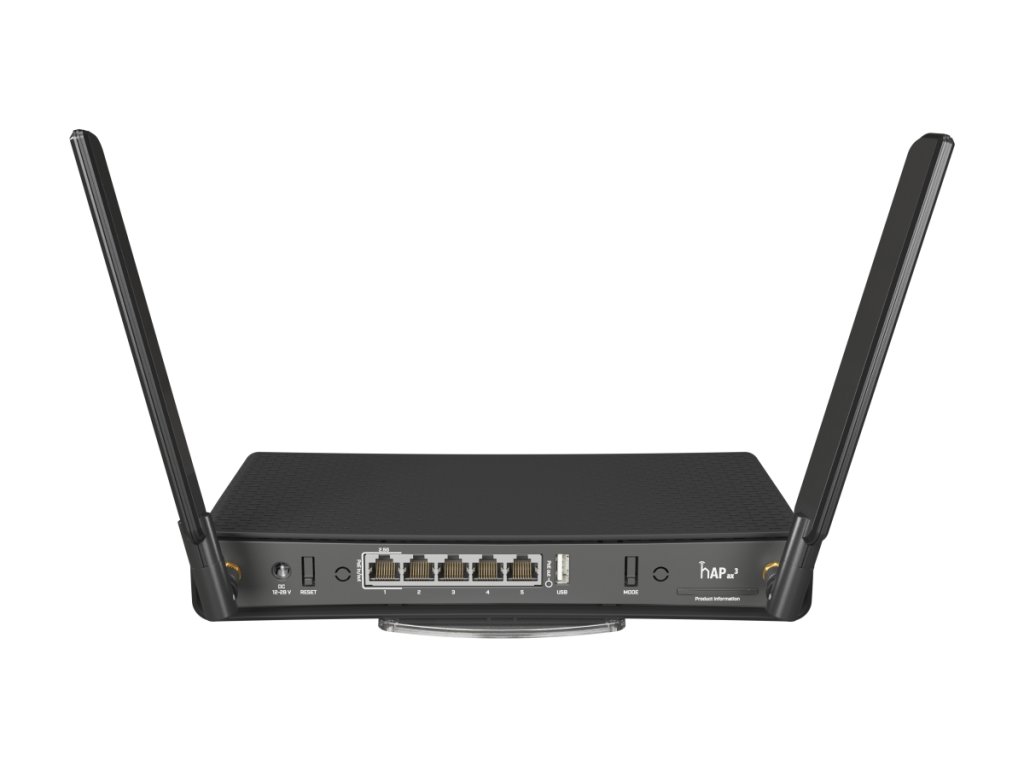 Dual Band WiFi router od mikrotik s ozačením Hap ax3 prípadne C53UiG+5HPaxD2HPaxD v desktop prevedení s 2 externými rádiovými časťami s podporou 802.11a/b/g/n/ac/ax umožňujúce súčasnú prevádzku v oboch pásmach.