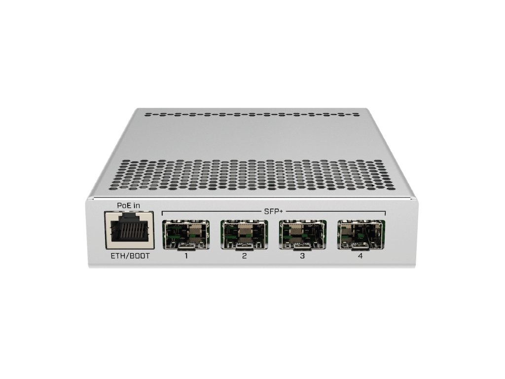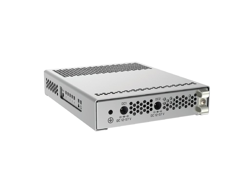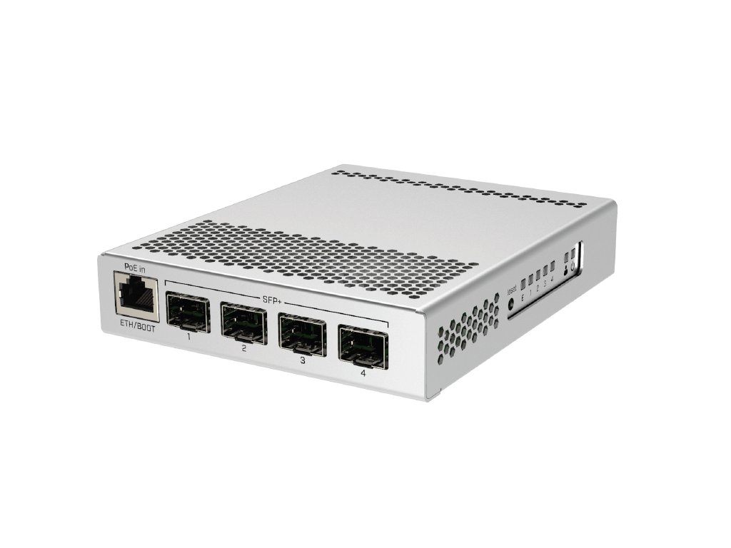 CRS305-1G-4S+IN je kompaktný, napriek tomu veľmi výkonný switch, ktorý má štyri SFP+ porty s rýchlosťou 10Gbps/port. Zariadenie má tiež okrem optických portov aj jeden GLAN s podporou POE-in pre ľahký prístup k zariadeniu, konfigurácii zariadenia alebo ako prevod na metalické vedenie. Na napájanie slúžia hneď dva DC konektory pre redundanciu napájania. Switch je veľmi elegantný, kompaktný a jeho kovové púzdro bez ventilátorov zaisťuje tichú prevádzku.