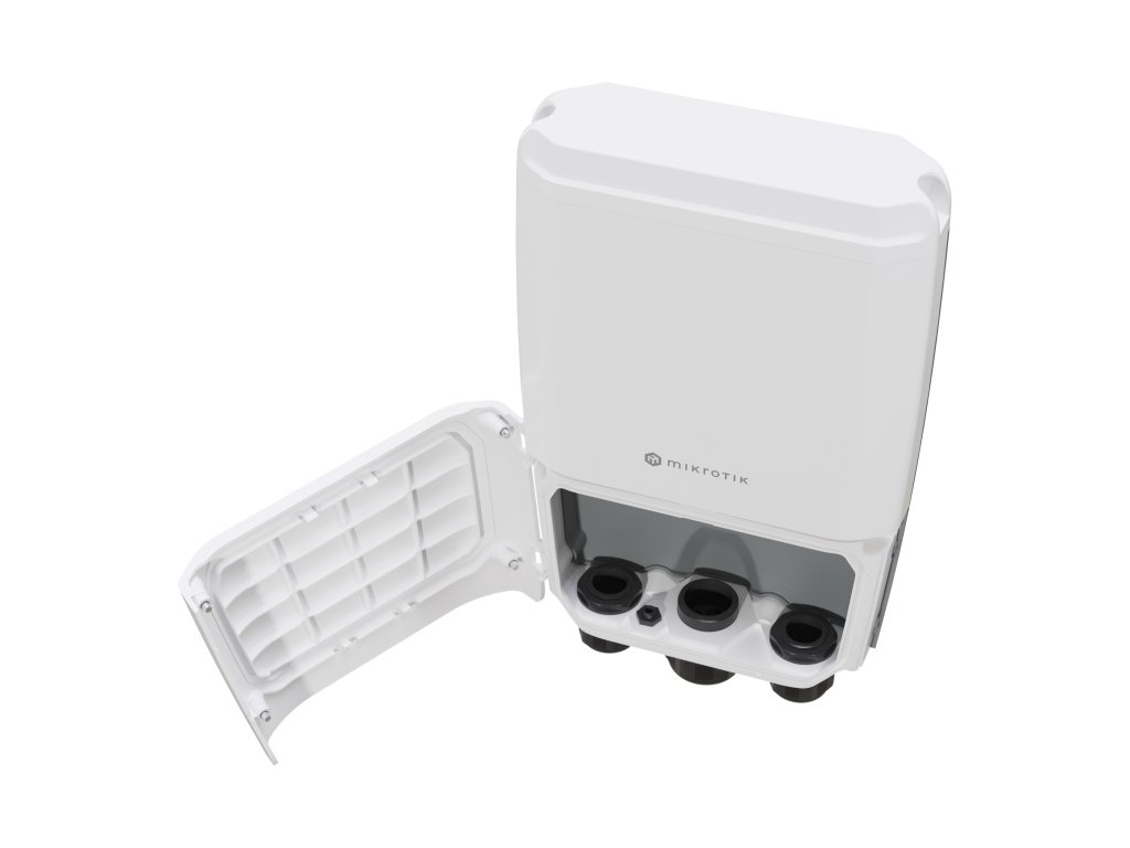 Switch má veľmi robustné šasi s krytím proti vode IP66, možnosťou inštalácie na stenu, alebo stožiar a v spodnej časti sú pripravené dvierka na 4 skrutky s krížovou hlavou a 3 veľké káblové priechodky s dostatočným priestorom na všetky káble. Vnútri zariadenia je nainštalovaný ako RouterOS v7 s licenciou L5 a SwitchOS, ktorý je určený skôr pre jednoduchšiu správu.