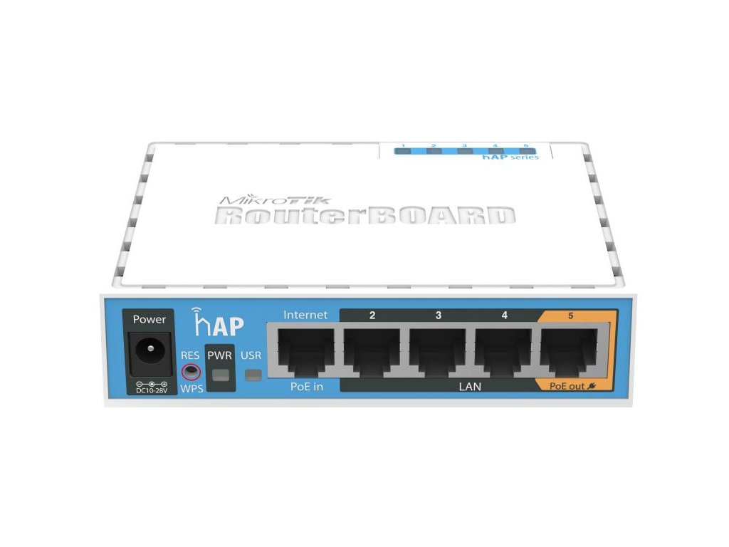 hAP má v plastovom boxe vstavanú všesmerovú anténu so ziskom 1,5 dBi, procesor QCA9531 650MHz, 64 MB RAM a predinštalovaný RouterOS L4. Na hAP nájdete päť 100 Mbps ethernetových portov, USB port a tiež klasický jack na napájanie (24V/0.8A zdroj v balení nájdete v balení). Zariadenie je možné napájať pomocou jacku a tiež cez PoE, na čo slúži port číslo 1. Posledný port číslo 5 môžete využiť na napájanie iného passive PoE zariadenia.