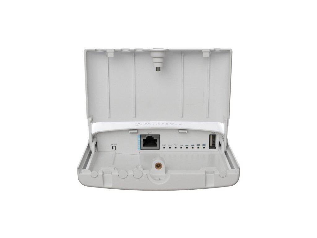 Jednotka je vybavená Gigabitovým LAN portom s podporou napájania iba cez pasívne PoE (18 až 28V DC), 2x RSMA female konektory pre pripojenie antény.