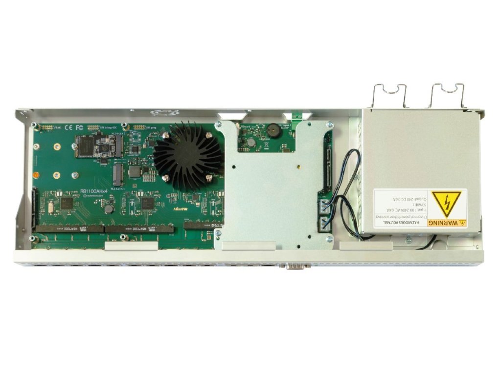 RB1100AHx4 je špeciálna edícia rackmount produktu navrhnutého pre plynulý chod aplikácie Dude. Srdcom Routerboardu je 4-jadrový procesir Cortex A15 taktovaný na frakvenciu 1,4 GHz s priepustnosťou až 7.5Gbps a maximálnou spotrebou 25W. Pre rýchly chod databázy, proxy cache, alebo iných diskových operácii slúži priložený 60 GB M.2 SATA pevný disk, na ktorom je predinštalovaný Dude balíček.