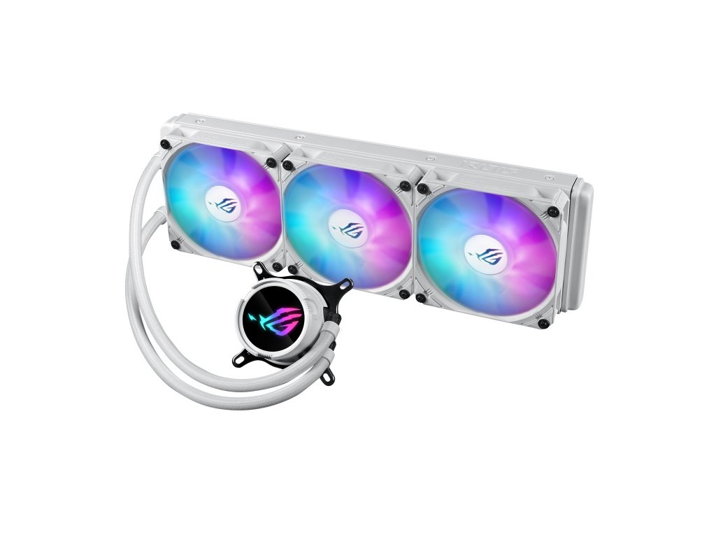 Model: Asus ROG Strix LC III 360 ARGB, White Edition Podporované procesory: *Intel: LGA 1851, 1700, 1200, 115x *AMD: AM5,AM4 Vodní blok: *Rozměry: 72 x 72 x 61 mm *Material (CPU Plate): Copper Chladič: *Rozměry: 394 x 121 x27 mm *Materiál: Aluminum *Délka hadice: 400 mm Ventilátor: *Velikost: 3x Ventilátor (120mm) *Rozměry: 120 x 120 x 25 mm *Rychlost: 800 - 2200 RPM +/- 10% RPM *Proudění vzduchu: 70.38 CFM *Hlučnost: 36 dBDodatočné parametre