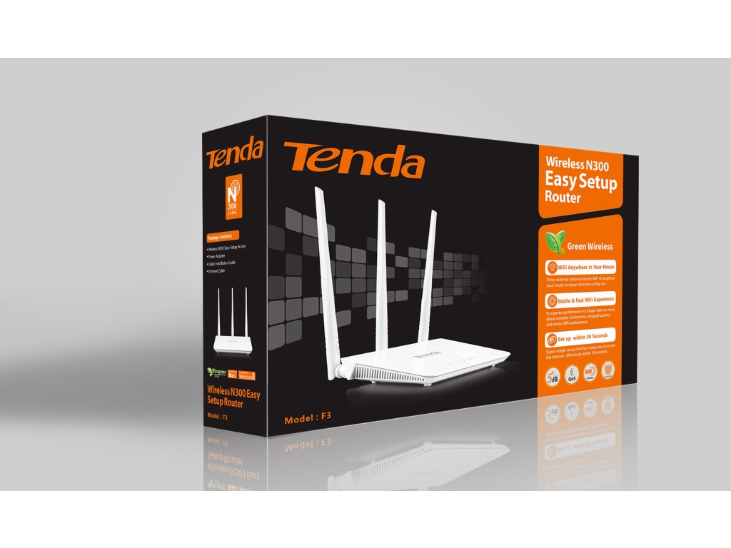 Tenda F3 (F303) WiFi N Router 802.11 b/g/n, 300 Mbps, WISP, Universal Repeater, 3x 5 dBi antény