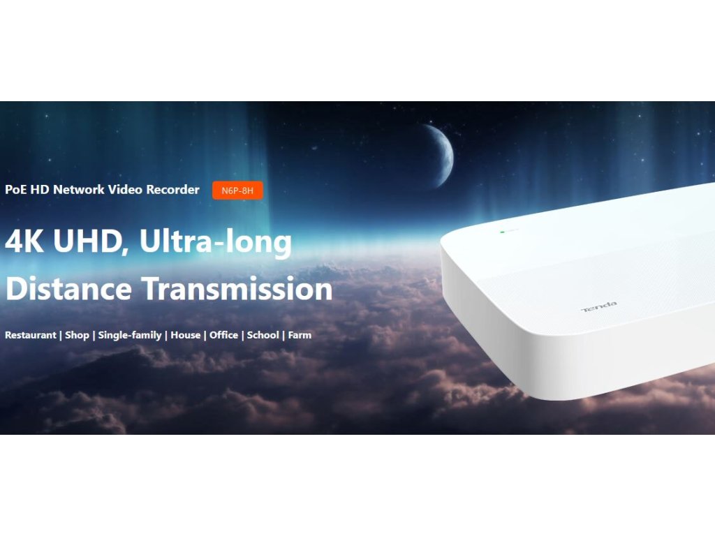 Tenda N6P-8H - PoE kamerový 4K NVR rekordér, 8 kanálů, H.265+, OnViF, zvuk, web. rozhraní, CZ app