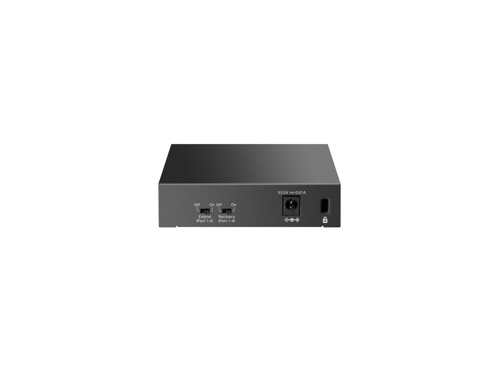 Nemanagovateľný PoE switch od TP-Linku s (5) 10/100 Mbps z čoho 5. port bez PoE môže slúžiť ako uplink a zvyšné 4 porty podporujú PoE out so štandardom 802.3af (až 15,4 W/port).
