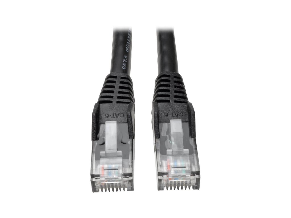 Cat6 Gigabit Snagless Molded (UTP) Ethernet Cable (RJ45 M/M), PoE, Black, 15 ft. (4.57 m) *Prémiová kabeláž pro aplikace kategorie 6, kategorie 5e a kategorie 5, dimenzovaná pro komunikaci 550 MHz/1 Gb/s *Navrženo tak, aby splňovalo specifikace kategorie 6; snižuje křížové přeslechy a zpětné ztráty *IEEE 802.3ab *PVC 4párové splétané UTP *Vybaveny botkami s integrovaným odlehčením tahu a konektory RJ45 (samec) *Na tento výrobek se vztahuje omezená doživotní záruka. Technologie: Cat6; PoE Konektory: 2x RJ45Dodatočné parametre