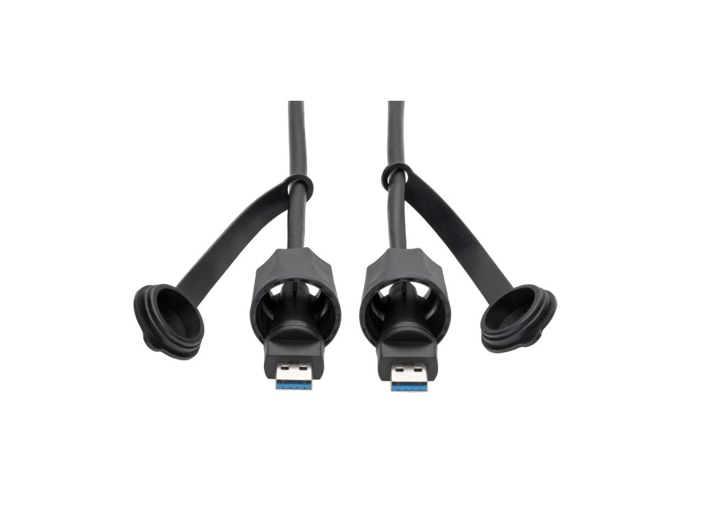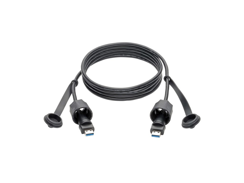 USB 3.0 SuperSpeed A to A M/M Cable, Industrial - IP68, Shielded, 6 ft. (1.83 m), TAA Připojuje vysokorychlostní zařízení USB 3.0 v průmyslovém prostředí, které vyžaduje ochranu proti prachu a vlhkosti. *Vytvořeno pro ochranu řízení procesů a dalších aplikací USB 3.0 v náročných prostředích. *Stupeň krytí IP68 odolává prachu a vydrží ponoření do 1,5 m vody až 60 min. *Podporuje přenos dat přes rozhraní USB 3.0 rychlostí až 5 Gb/s - 10× rychlejší než USB 2.0. *Odstraňuje linkový šum EMI/RFI, který může zničit data a ovlivnit výkon zařízení. *Splňuje normy Federal Trade Agreements Act pro nákupy v rámci seznamu GSA Technologie: USB 3.x; USB 3.0 (up to 5 Gbps) Konektory: *USB 3.0 A (MALE) *USB 3.0 A (MALE)Dodatočné parametre