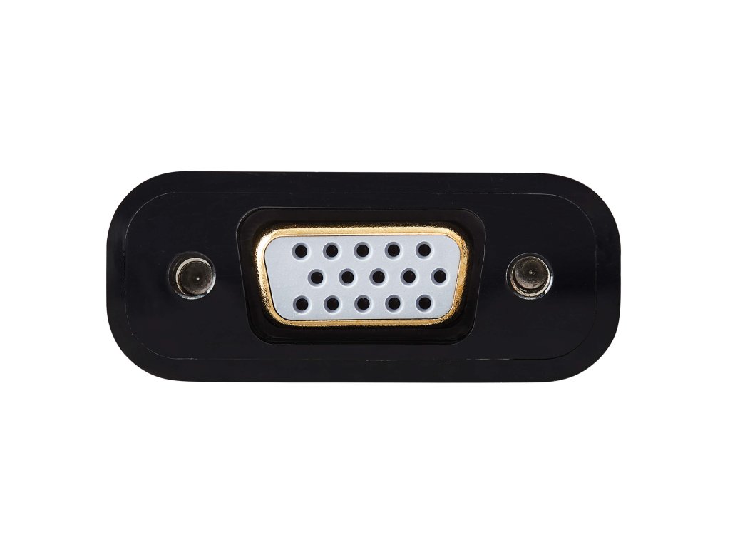 DisplayPort to VGA Active Adapter Video Converter , DP ver 1.2 (M/F), 6-in. (15.24 cm) Převádí video signál DisplayPort 1.2 pro zobrazení na monitoru VGA, projektoru nebo televizoru. *Aktivní převodník pracuje se všemi porty DisplayPort *Podporuje rozlišení HD videa až do 1920 x 1080 (1080p) *Podporuje počítačová rozlišení videa až do 1920 x 1200 *Převádí výstup DisplayPort v jednom i dvou režimech *Pozlacené konektory a kontakty *Tříletá omezená záruka Technologie: VGA/SVGA; DisplayPort Konektory: *DISPLAYPORT (MALE) *HD15 (FEMALE)Dodatočné parametre
