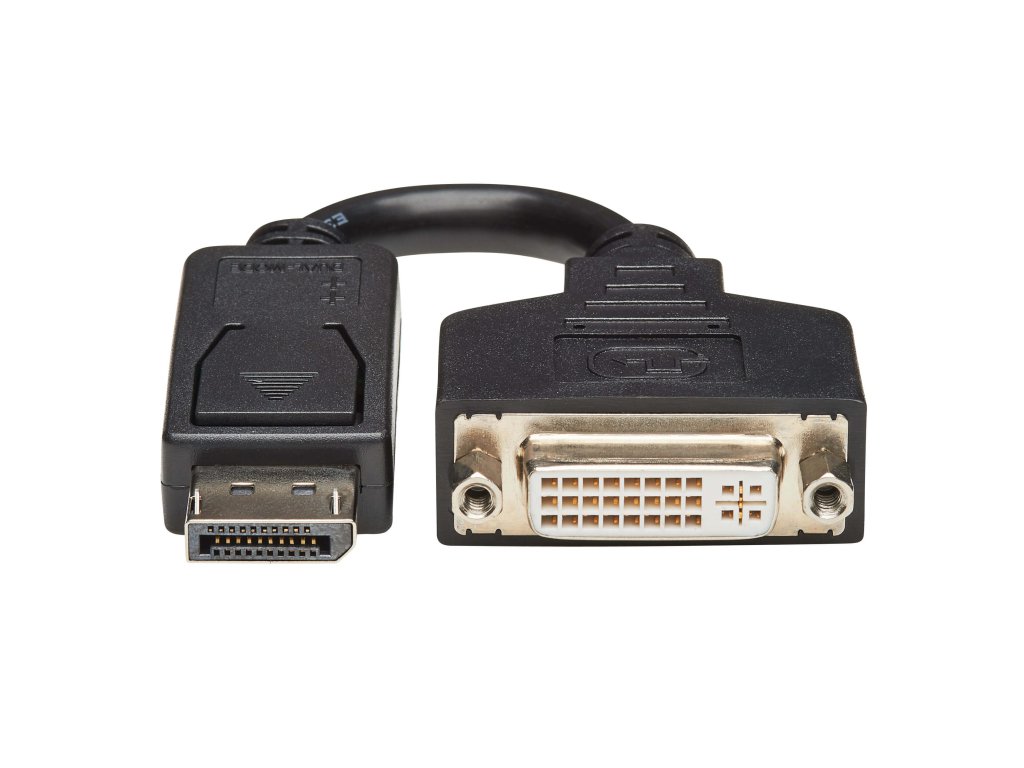 DisplayPort to DVI-I Adapter Cable (M/F), 6 in. (15.2 cm) Připojení monitoru DVI k počítači s výstupem DisplayPort *Převodník DisplayPort na DVI (DisplayPort-Male na DVI-I-Female), 6 palců. *Pohodlí Plug-and-play; nejsou potřeba žádné ovladače ani software *Podporuje jednovodičové počítačové video DVI-D s rozlišením až 1920 x 1200 a HD rozlišení až 1080p *Tento produkt je pasivní adaptér a vyžaduje, aby připojený počítač měl port DP++ (DisplayPort ++) s duálním režimem. *Tříletá omezená záruka Technologie: DVI; DisplayPort Konektory: *DISPLAYPORT (MALE) *DVI-I DUAL-LINK (FEMALE) (WIRED TO DVI-D SINGLE-LINK)Dodatočné parametre