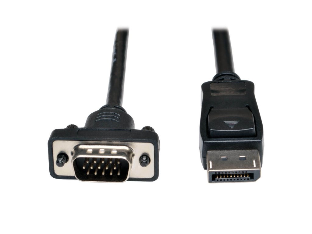 DisplayPort 1.2 to VGA Active Adapter Cable (DP with Latches to HD15 M/M), 6 ft. (1.8 m) Převádí videosignál DisplayPort v1.2 pro zobrazení na monitoru VGA, projektoru nebo televizoru. *Aktivní adaptér pro použití s libovolným portem Displayport *Nízkoprofilový konektor VGA se přesně vejde do volného prostoru; nepřekáží mezi stěnou a monitorem ani nepřekáží sousedním připojením *Podporuje rozlišení počítačového videa až 1920 x 1200 *Podporuje rozlišení HD videa až 1920 x 1080 (1080p) *Není nutný samostatný adaptér *Poniklované konektory s pozlacenými kontakty *Tříletá omezená záruka Technologie: VGA/SVGA; DisplayPort Konektory: *DISPLAYPORT (MALE) *HD15 (MALE)Dodatočné parametre
