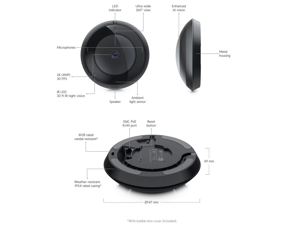 Ubiquiti UVC-AI-360, Fisheye UniFi video kamera, 5MP, 360°