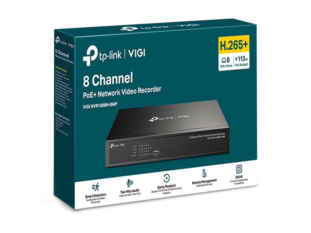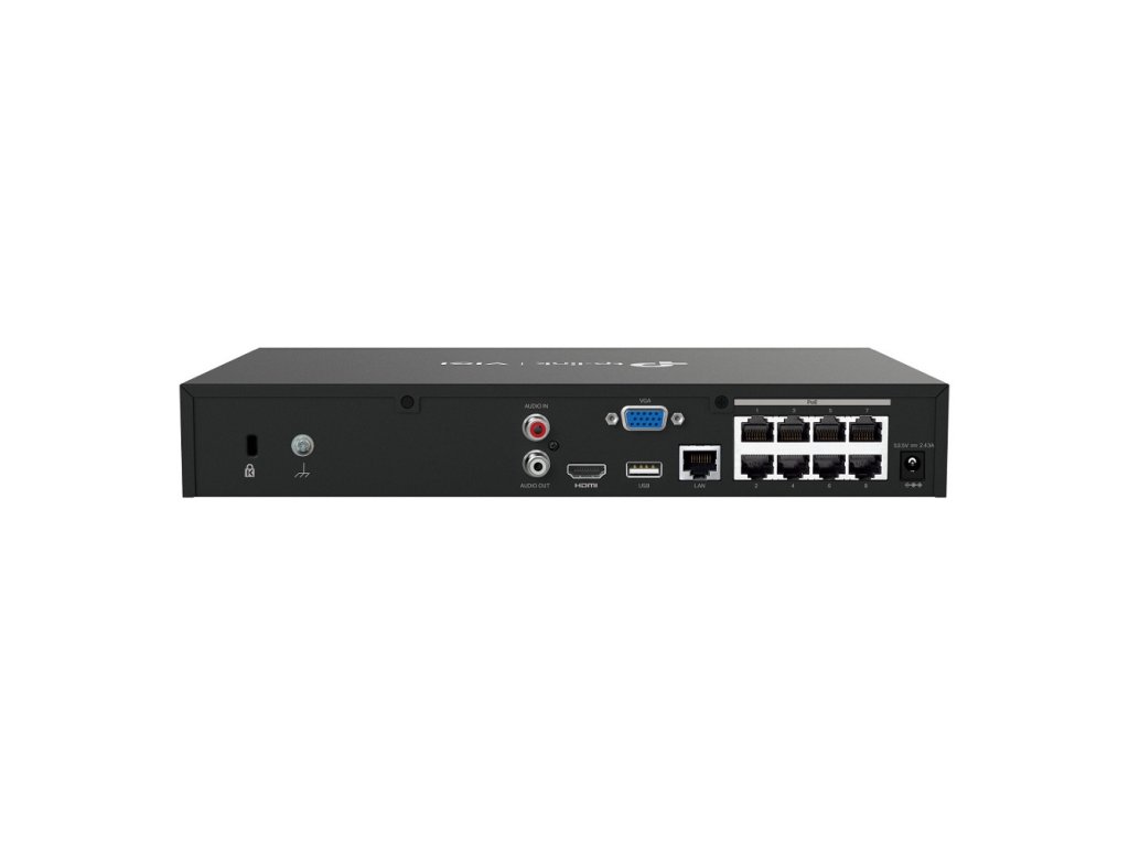 Záznamové zariadenie od značky TP-Link pre nahrávanie a napájanie až 8 IP kamier. Dokáže nahrávať kamerové záznamy v maximálnom rozlíšení až 8 MP. Do siete je možné zariadenie pripojiť jedným 10/100 Mbps LAN portom a ďalších 8x 10/100 Mbps LAN majú podporu 802.3af/at PoE s celkovým PoE budgetom 113W.